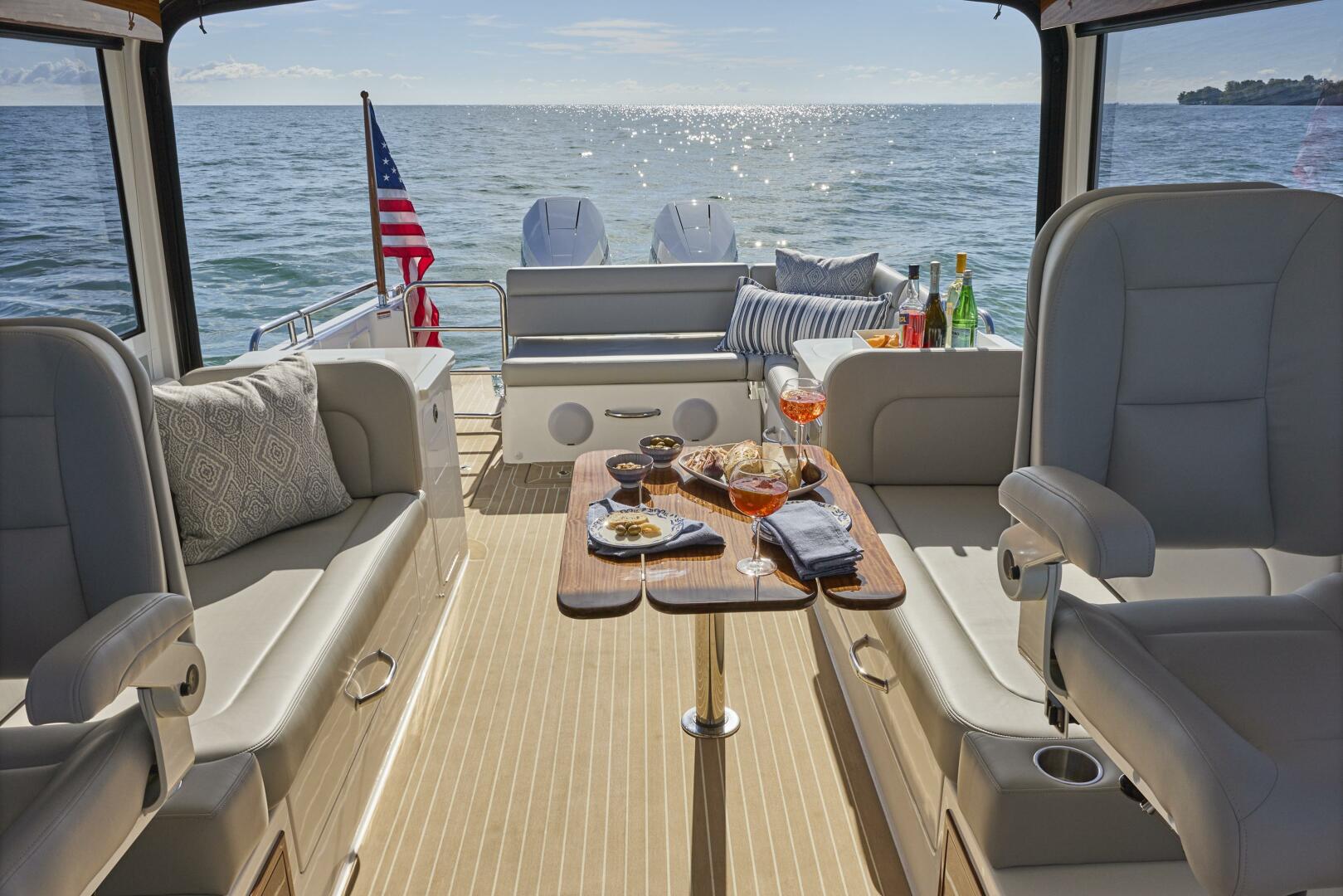 Whether you're entertaining at the dock, cruising with friends, or escaping offshore for a day on the boat, the MJM 38X delivers a timeless balance of style, performance, and all weather capability.