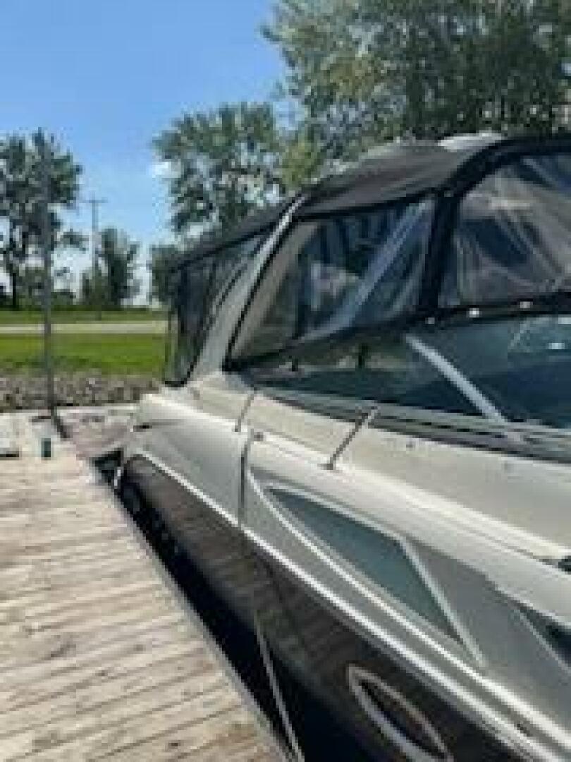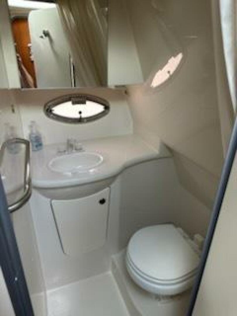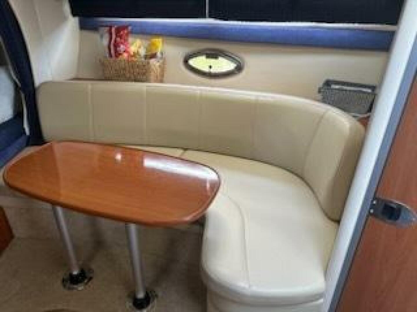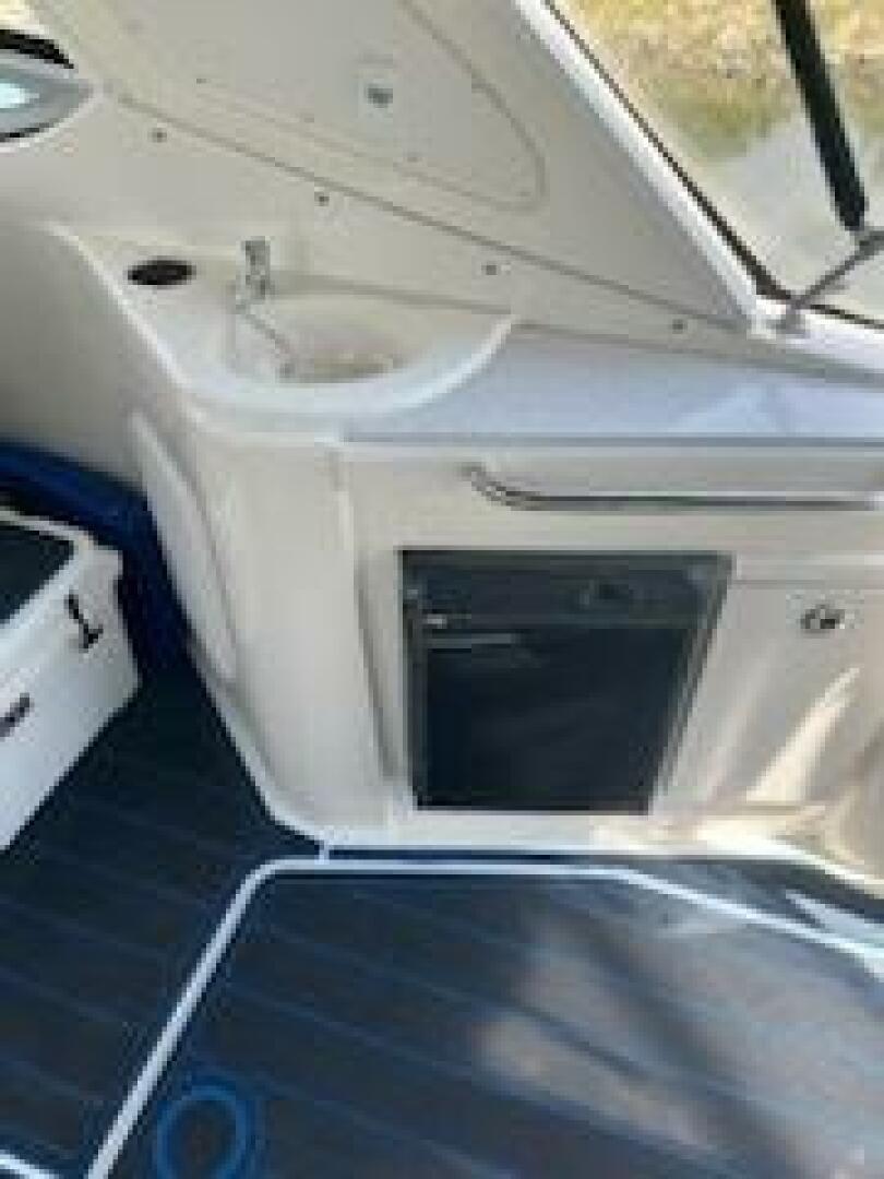 Sleek and spacious mid-size cruiser from Bayliner’s well-regarded 320 series — ideal for weekend escapes or extended stays aboard. Impressive cockpit layout featuring a well-designed helm station, comfortable companion seat, and wrap-around seating with plenty of room for friends and family.