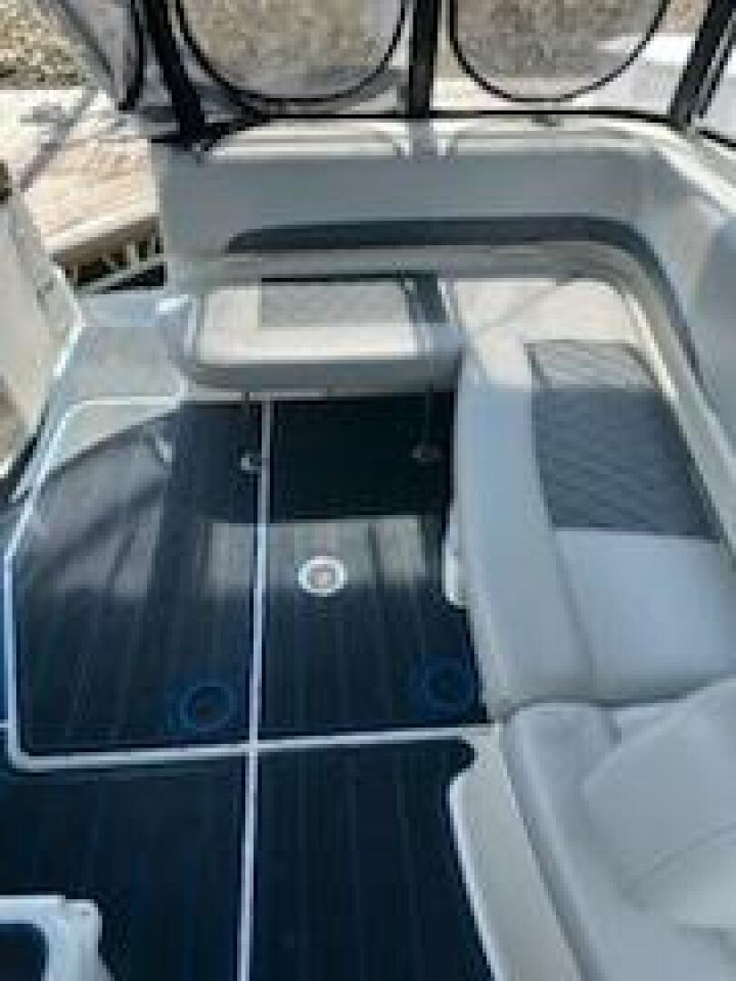 The Bayliner 320 makes it easy to have fun on your terms, with multiple layouts to choose from. The private aft berth in the cabin can be complemented with massive convertible wraparound seating for entertaining, or a fixed forward berth option if nights aboard for a second couple are a priority. The expansive cockpit is easy to navigate with an open floor plan, and a rotating helm seat and optional port lounge bolster provide seating options. Twin fuel-injected Mercury engines ensure that you can take the fun wherever you want to go.