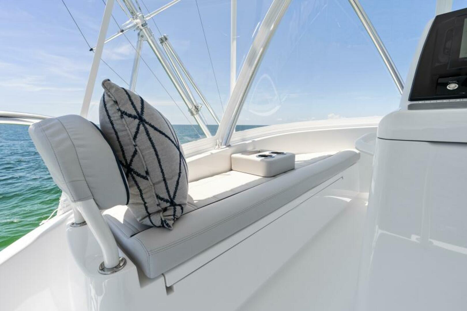 The 46 Billfish offers an exciting, larger model option to the Billfish lineup. Like its predecessor, the 38 Billfish, the 46 model shares the same improved building methods and materials. The Billfish models are built with many of the same mechanical systems, components, and technologies found on Viking's larger models. This 46 shines in an exciting performance and elite design quality. The 140-square-foot cockpit has room for the entire crew or family. The 46 Billfish’s command deck can be completely enclosed and is climate-controlled. The command deck features a salon-like living area with a roomy U-shaped lounge and hi-lo table and a lounge that extends along the starboard side. Both seating areas hold rod storage underneath.