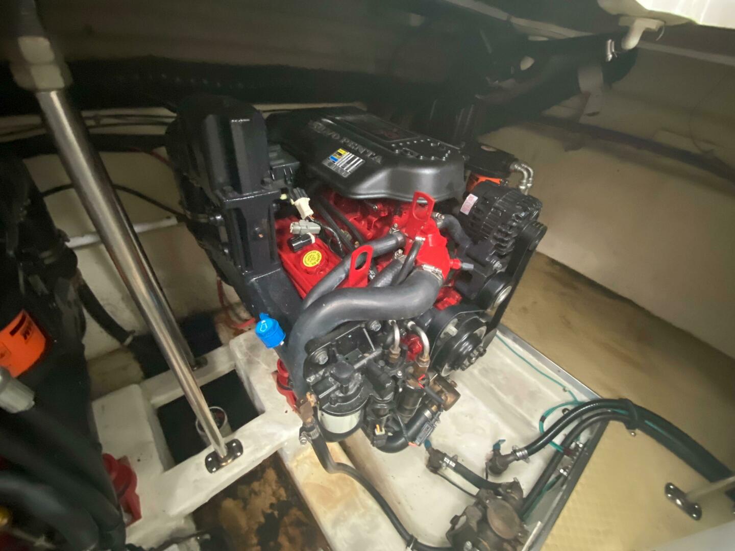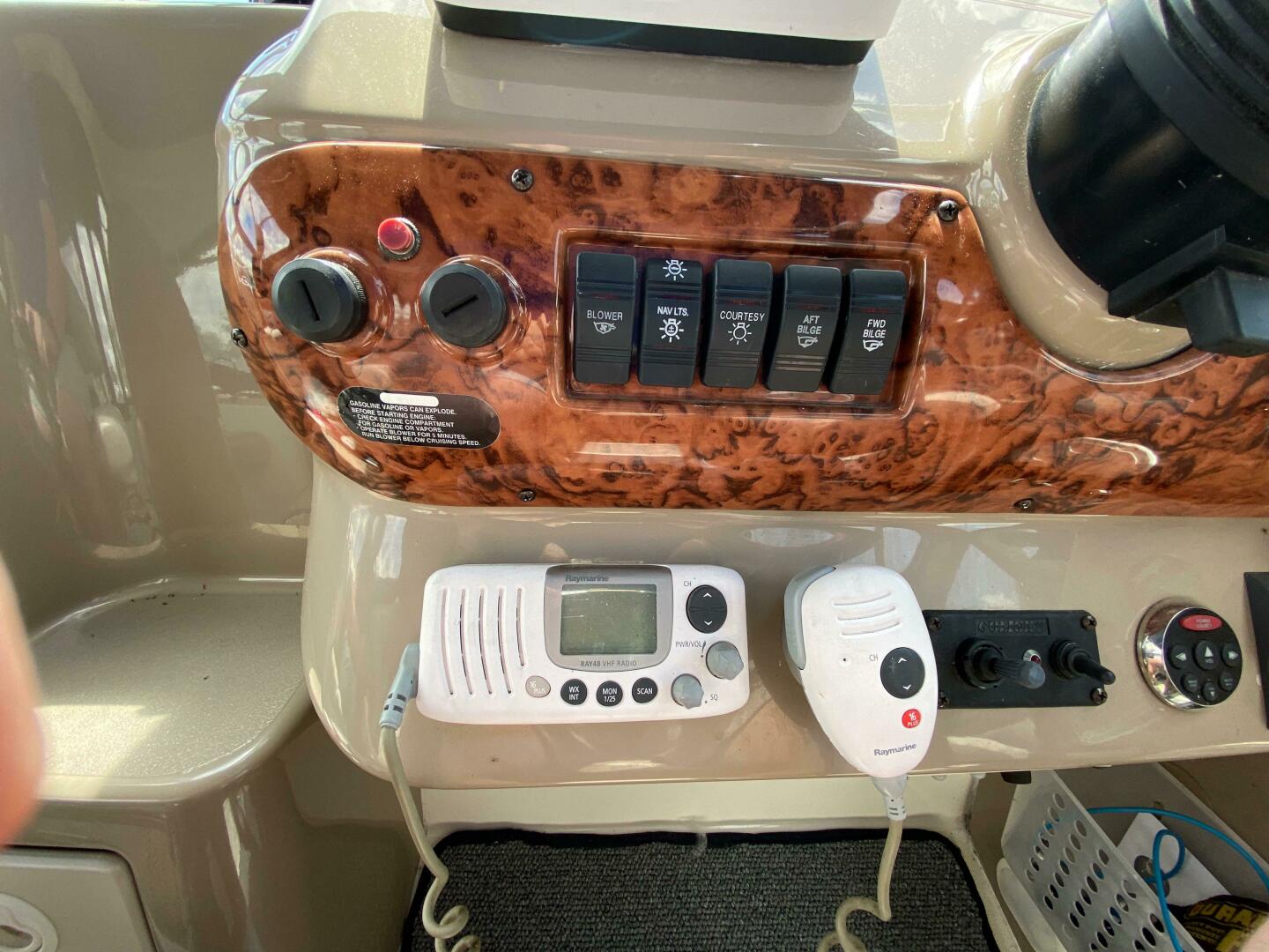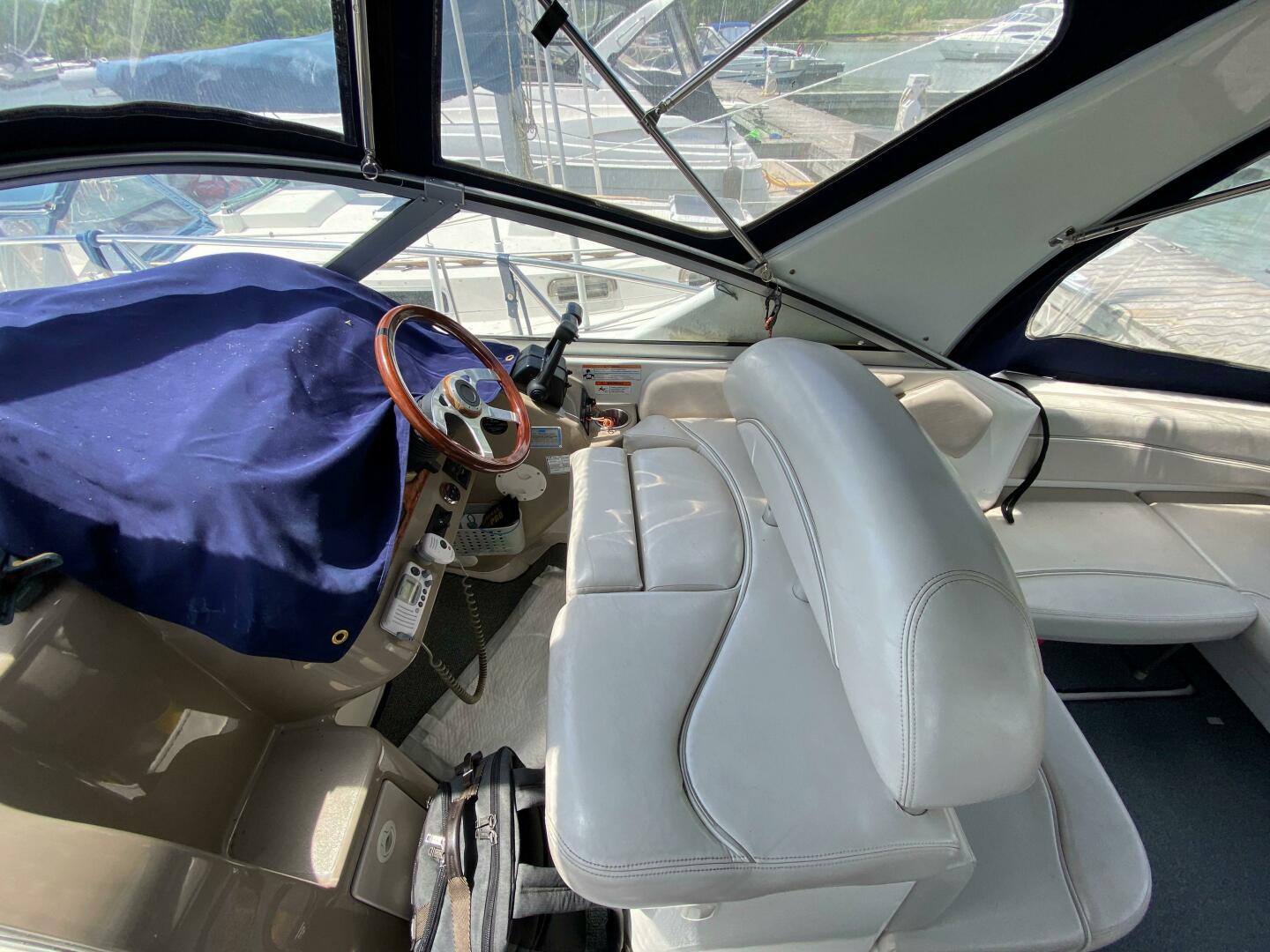 Electrically, the boat includes shore power, battery charger, and a foot-switch controlled electric windlass for anchor handling. Maintained with attention, she’s ready for her next owner to step aboard, cast off and enjoy. Ideally located in the 1000 Islands region, this Larson 330 Cabrio is a sensible upgrade in size and luxury that stays within a cruiser budget.