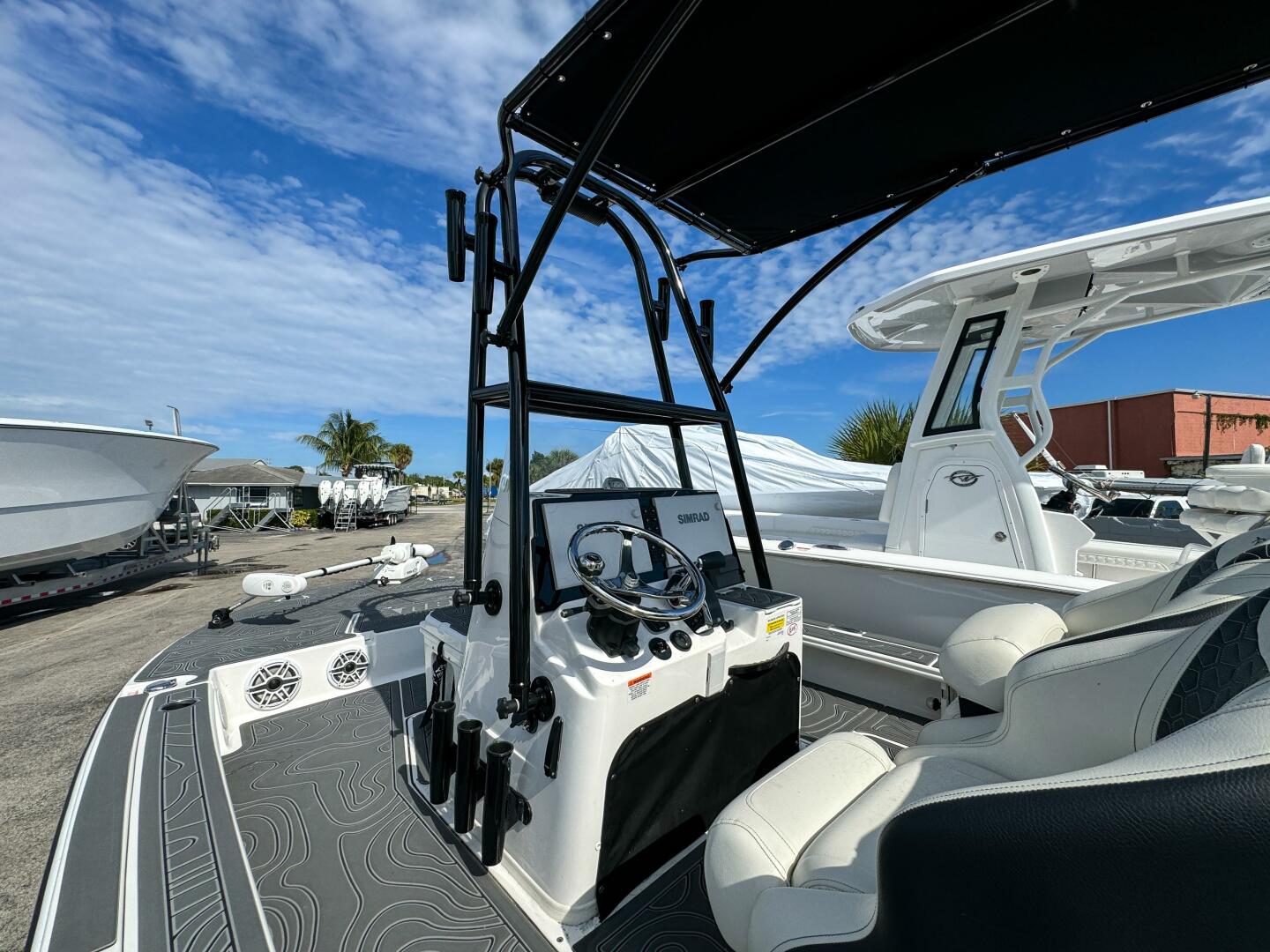 Loaded 2024 Tidewater 23 TPC Raptor in Whisper Gray with Black powder coat and 300R Mercury Racing (warranty thru 8/2026). Fully rigged with Simrad NSS 12s, dual Power-Poles, Ulterra trolling motor, JL Audio, Lumitec lighting, Gatorstep, and custom tower—turnkey and dialed in.