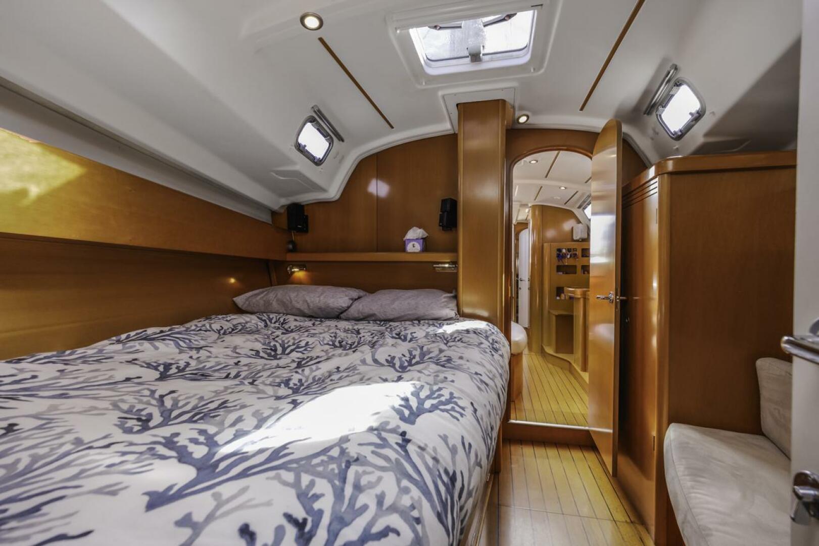 Owners stateroom forward 6'8" headroom, Pullman style berth with storage underneath to starboard seating and hanging locker to port. Head forward with electric toilet 6'8" headroom, shower and additional storage in forepeak for sails or miscellaneous gear, overhead Lewmar hatch, overhead and reading lights.