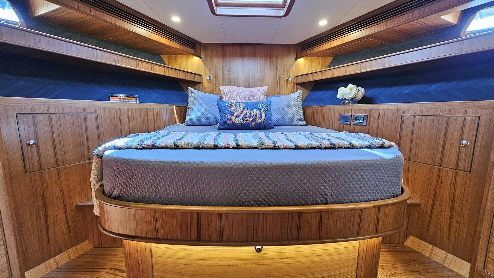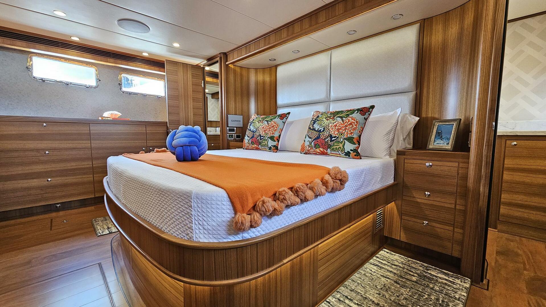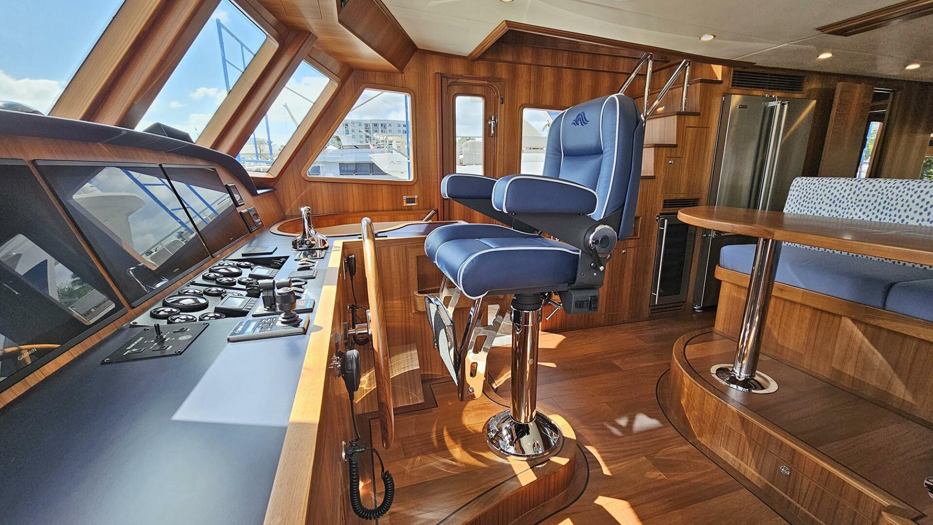 KNOT STABLE represents the pinnacle of elegance and ocean-going proficiency. Powered by fuel-efficient John Deere engines, she delivers reliable performance and long-range capability. Star Zero Speed stabilizers provide a smooth and comfortable ride both underway and at anchor, while upgraded bow and stern thrusters ensure precise handling and effortless maneuverability. The elegant interior features beautiful Brazilian teak flooring, creating a warm and timeless ambiance that complements the yacht’s modern design.