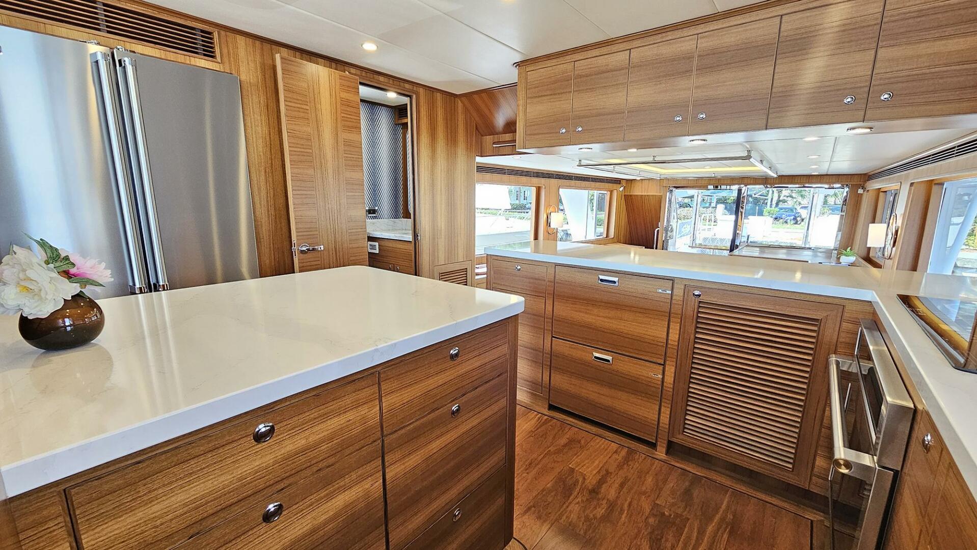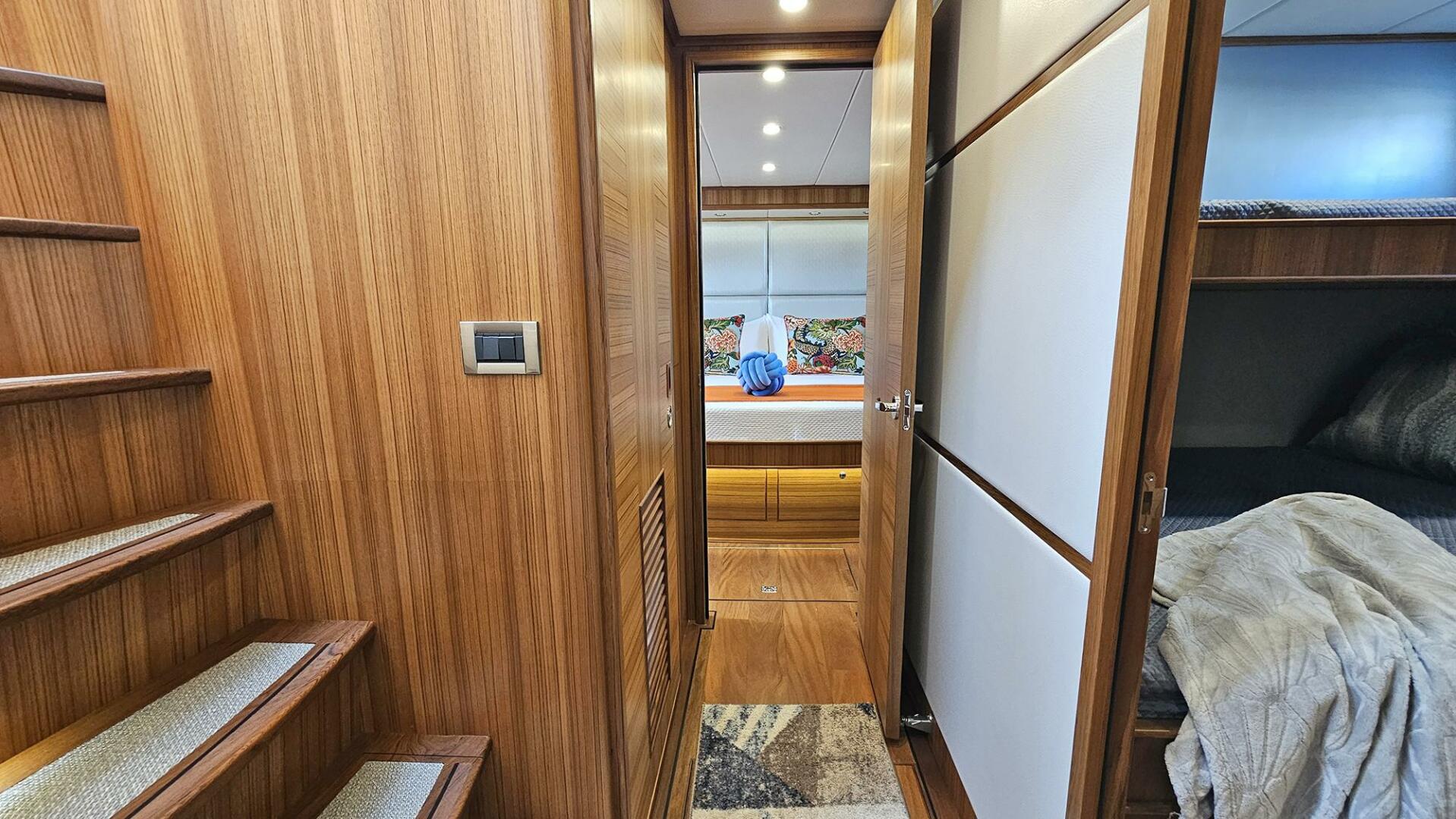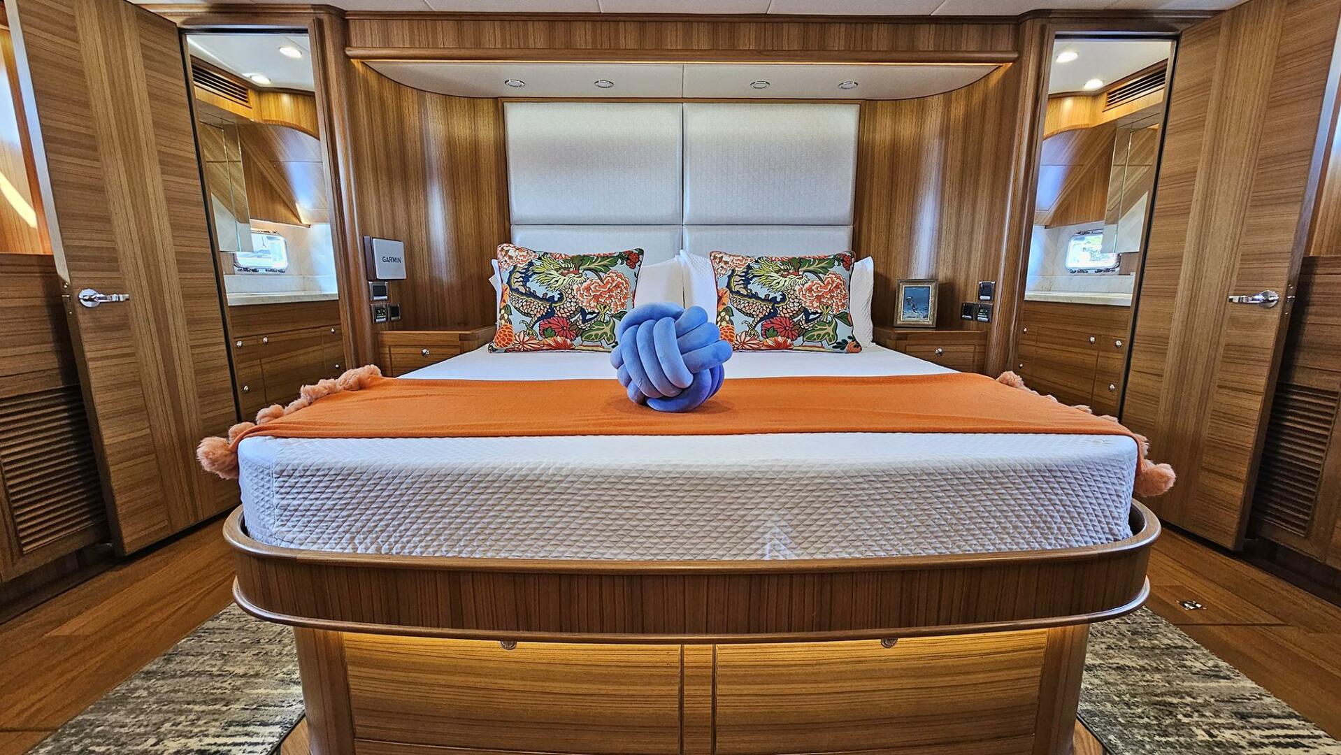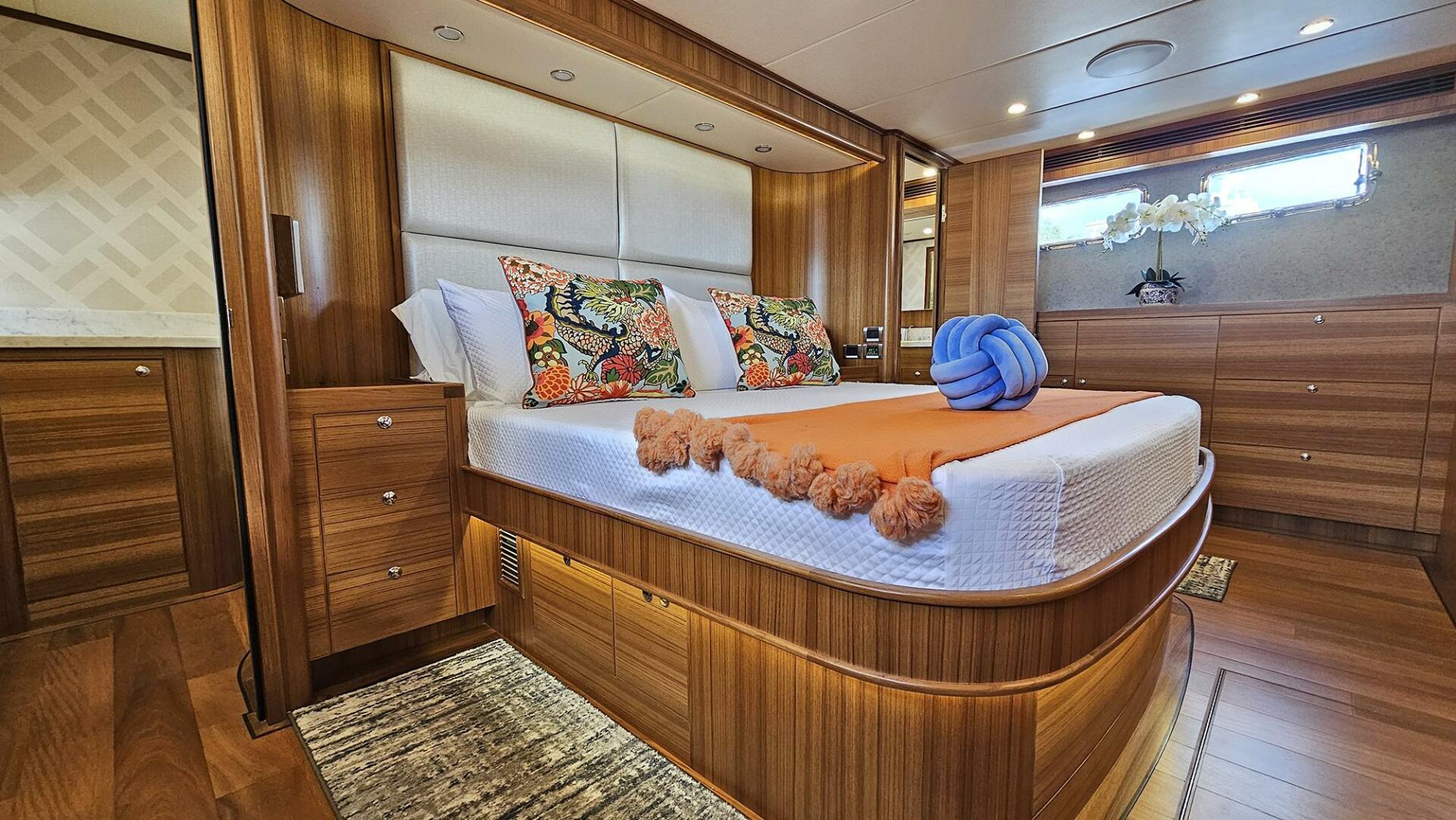 KNOT STABLE represents the pinnacle of elegance and ocean-going proficiency. Powered by fuel-efficient John Deere engines, she delivers reliable performance and long-range capability. Star Zero Speed stabilizers provide a smooth and comfortable ride both underway and at anchor, while upgraded bow and stern thrusters ensure precise handling and effortless maneuverability. The elegant interior features beautiful Brazilian teak flooring, creating a warm and timeless ambiance that complements the yacht’s modern design.