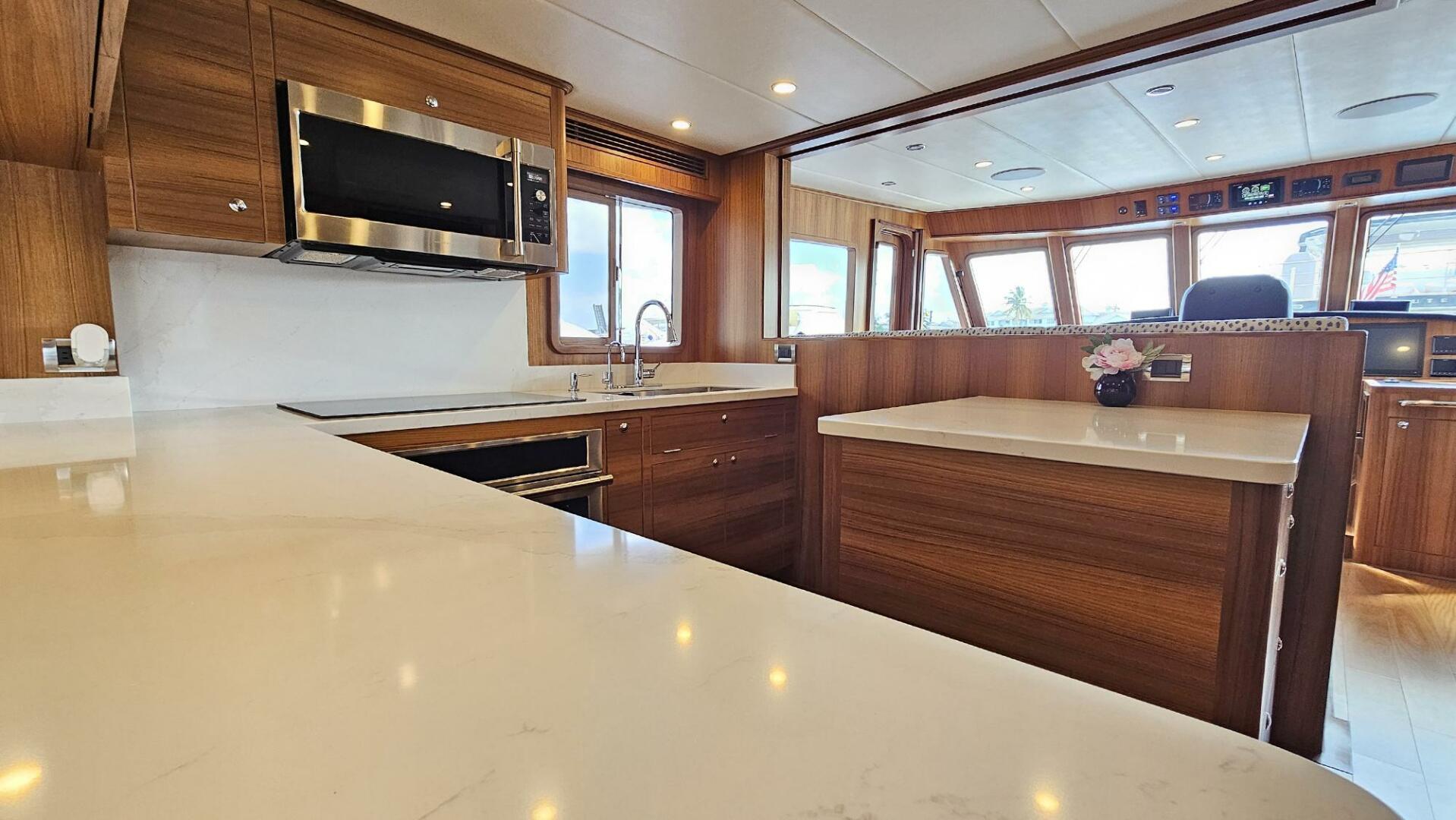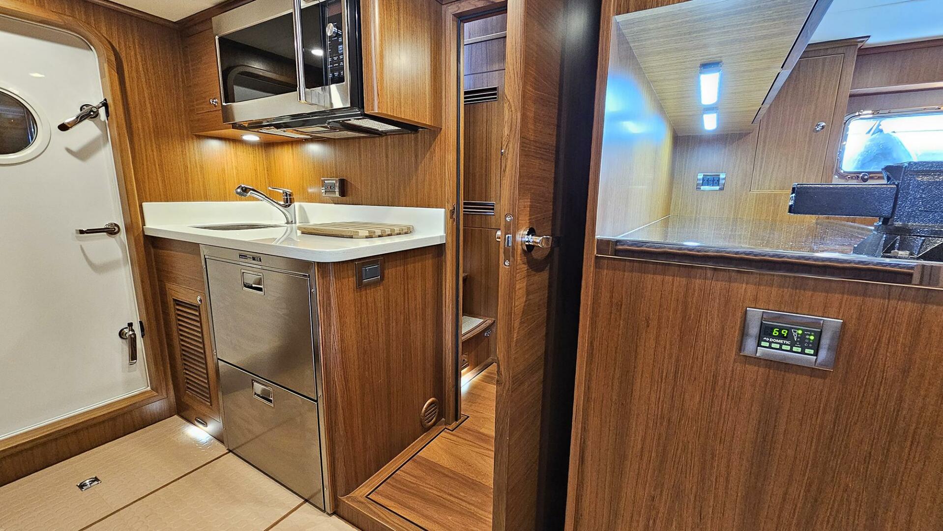 - Gallyette with a Corian countertop, stainless steel sink, microwave oven and Vitrifrigo drawer unit