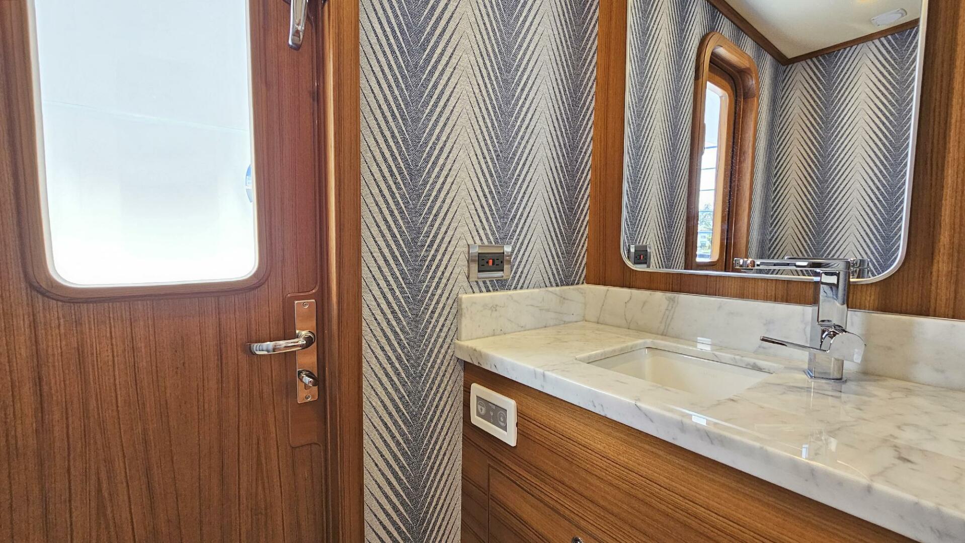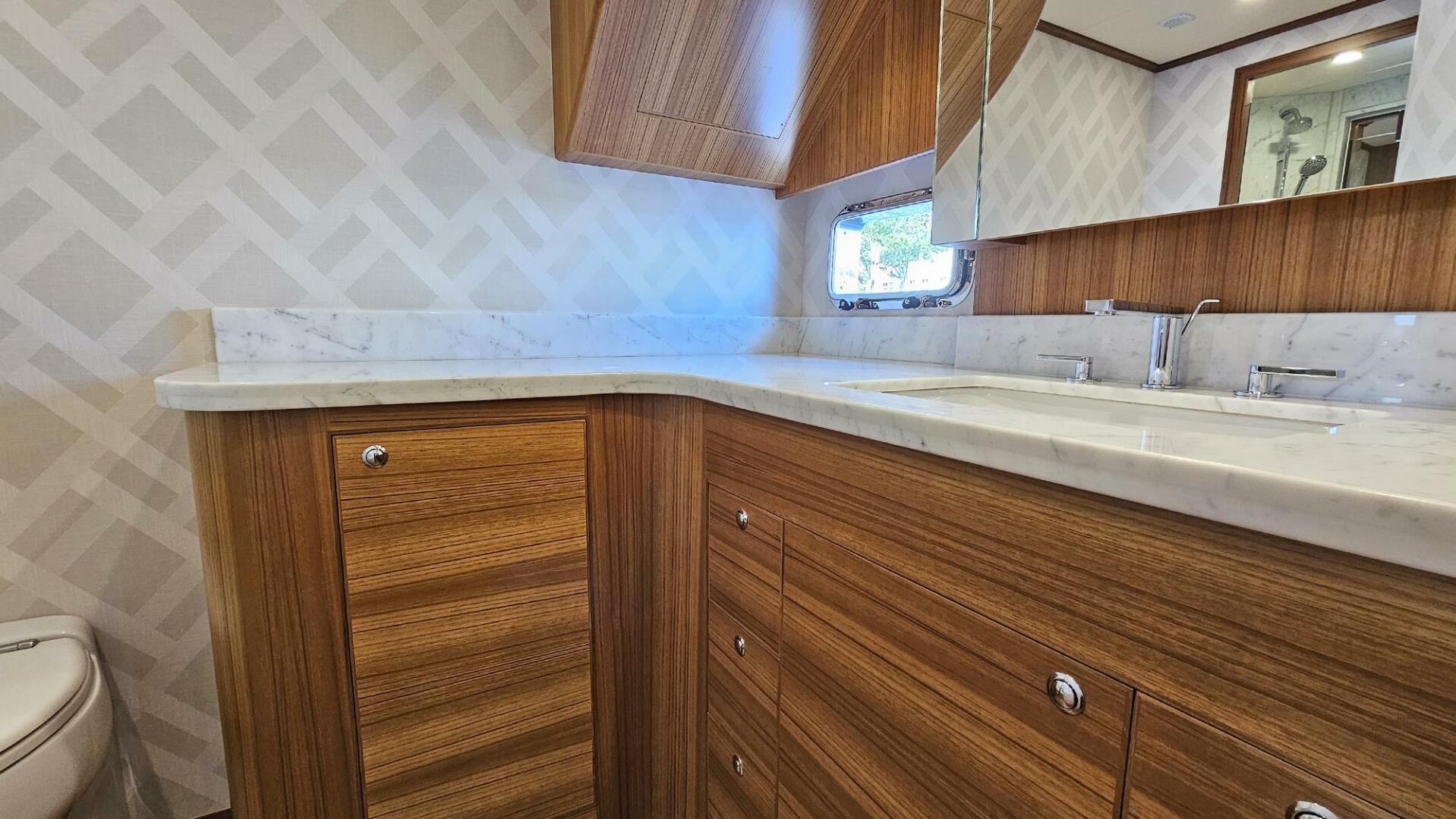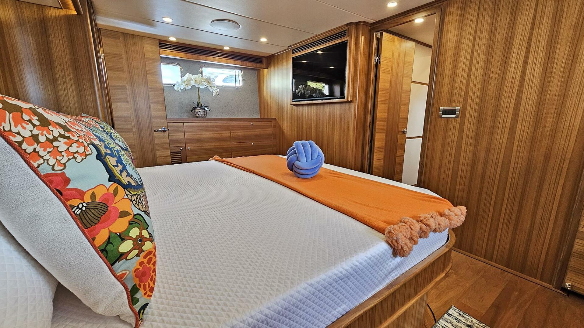 - Full-size sliding berth cabin with ensuite head and shower to port