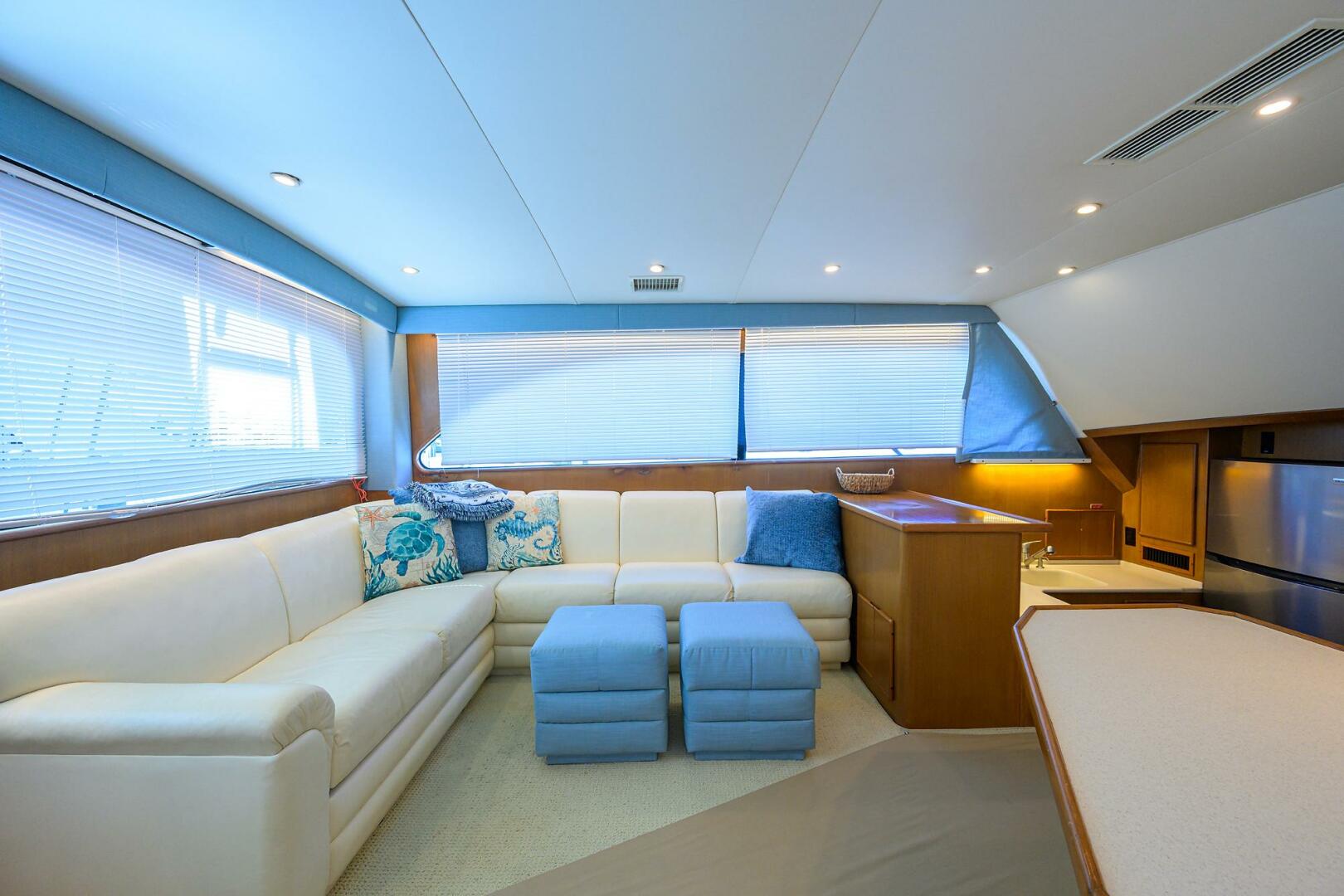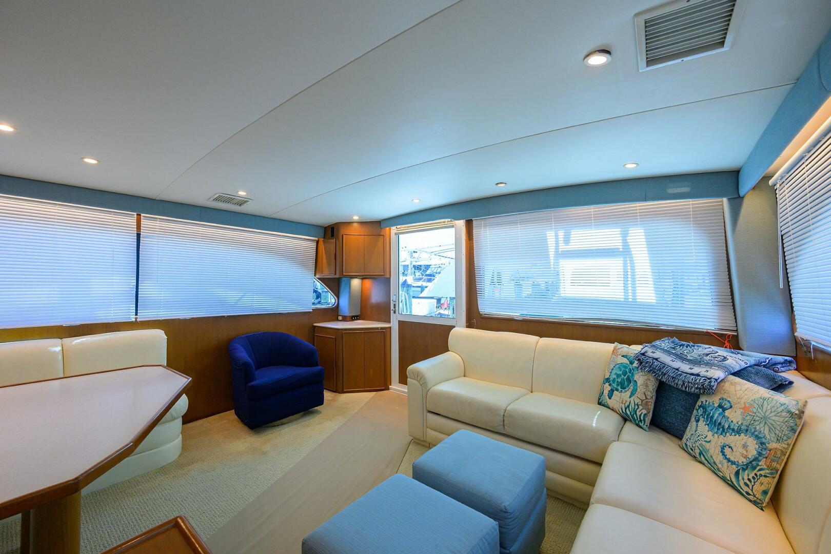 This Post is a must see! Preferable "Plan B" layout featuring 3 staterooms, 2 heads, step down galley and wide beam makes for a roomy salon. SEANYLE has been well maintained, Outfitted with 3 sided enclosure on flybridge she also includes 2 Garmin GPS plotters, Interfaced Furno radar and Fusion soun
