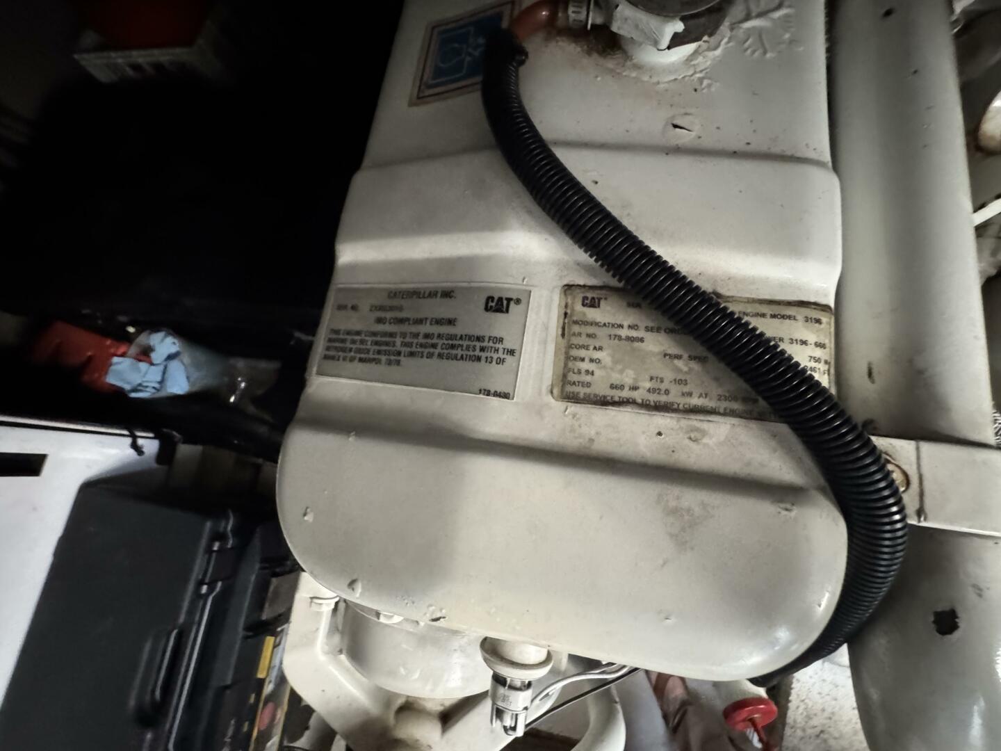At the helm, newer electronics provide modern navigation capability, while the Caterpillar 3196 diesels offer dependable power and efficient cruising speeds. Dockside handling is made simple with the bow thruster, giving confidence in any marina setting.