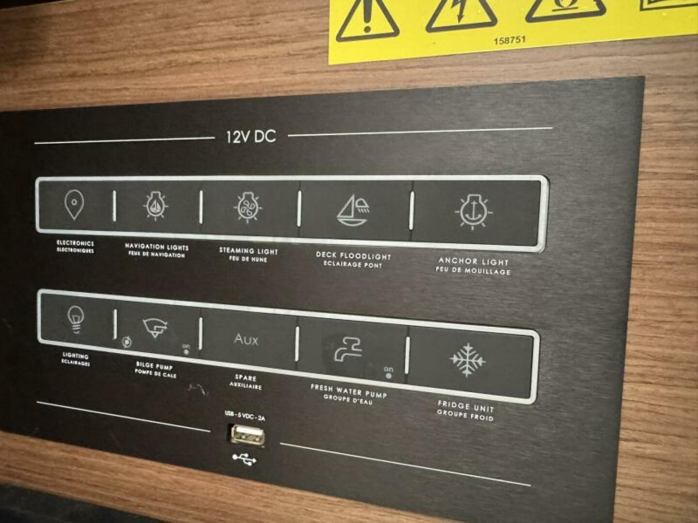 Hifi Fusion + Interior loudspeakers & Waterproof exterior speakers Dual USB socket: 1 in the saloon, 2 in the forward cabin,, 1 in the aft cabins