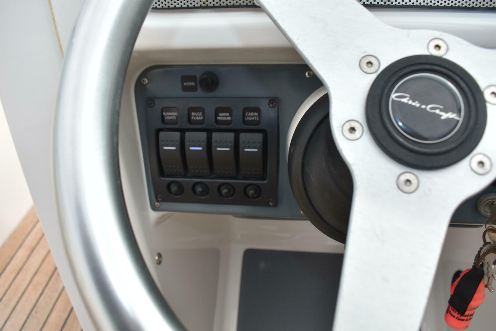 Powered by a Volvo Penta 8.1L V8 engine with only 327 hours, this Chris-Craft delivers both power and reliability. The engine is a replacement unit (installed after the original suffered freeze damage in Michigan) and runs strong with Corsa custom exhaust for a throaty, refined sound.