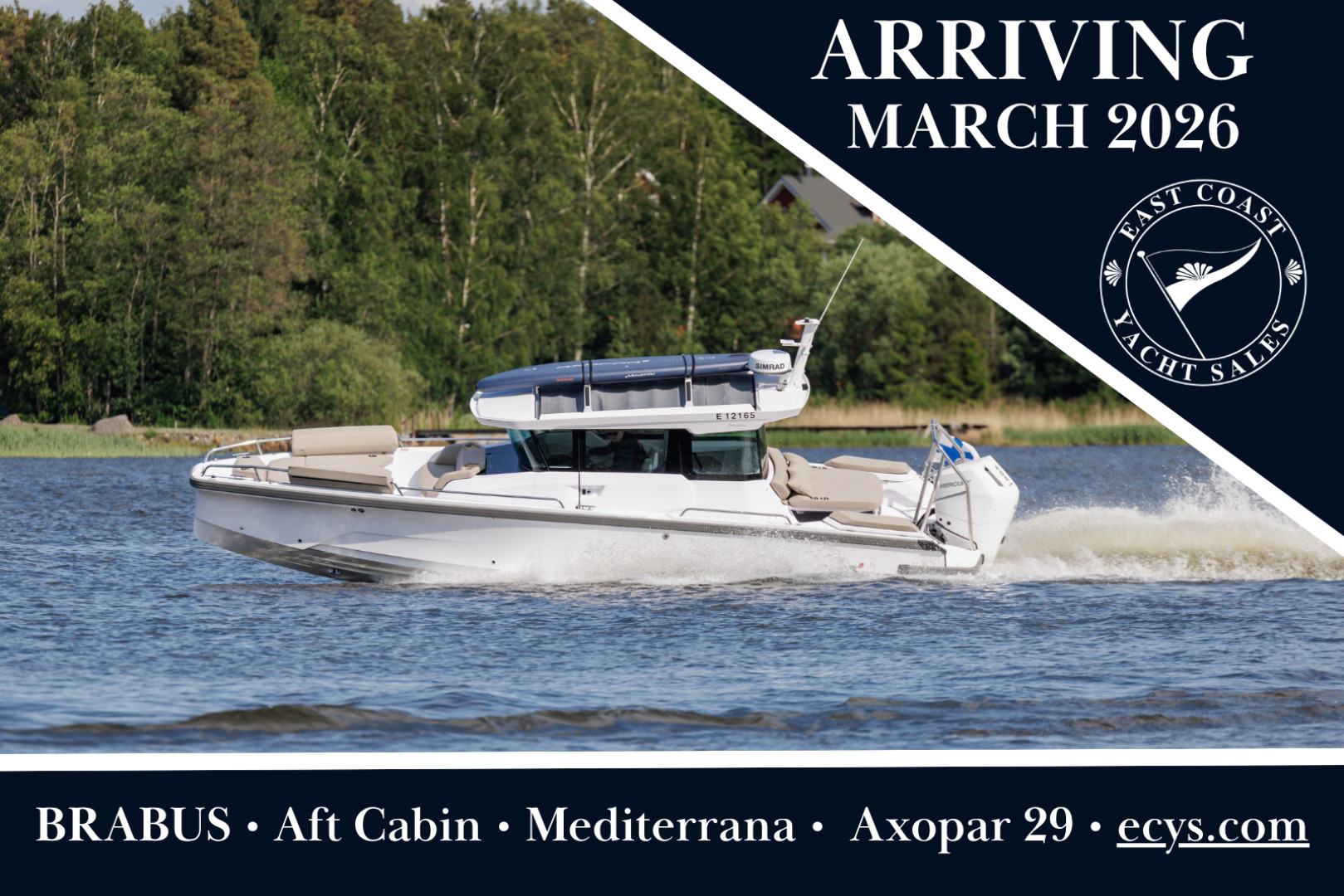 Brand new 2026 Aft Cabin Axopar 29 with Dual 200hp white Mercury engines and an elevated Mediterrana Upholstery package.