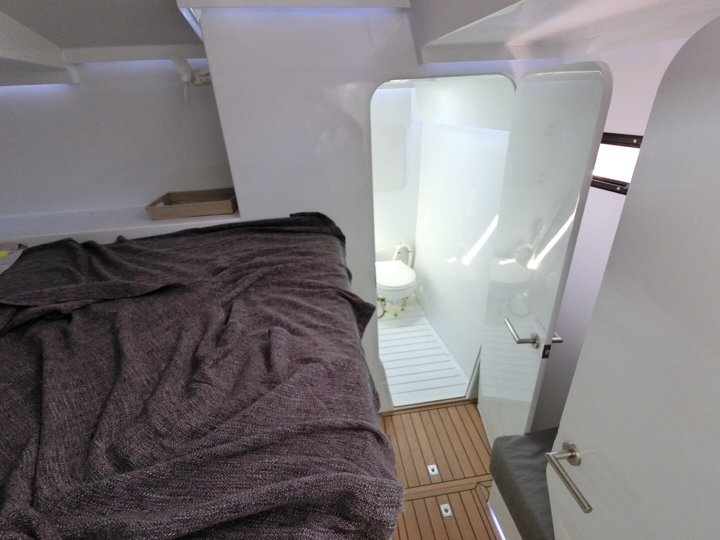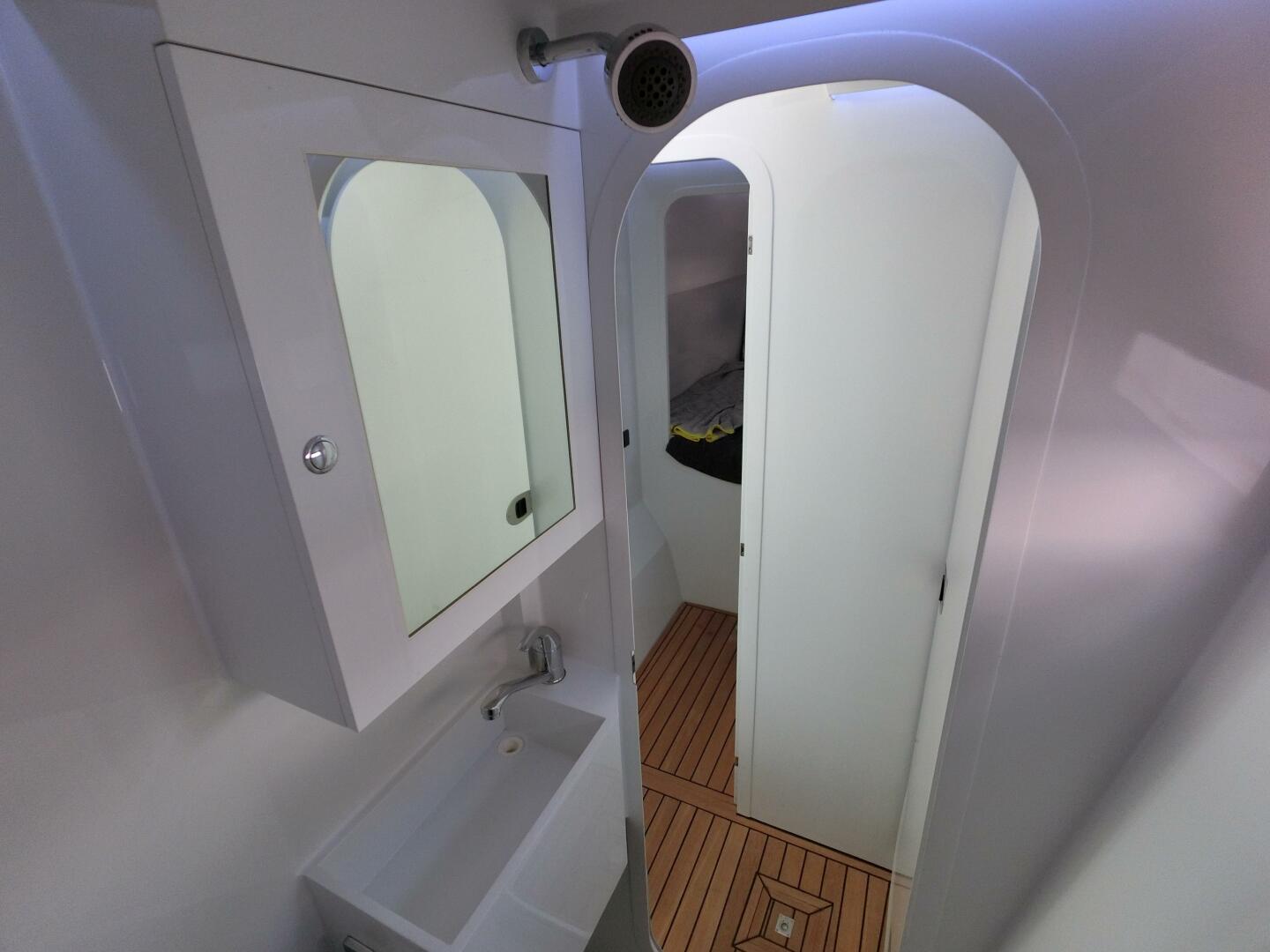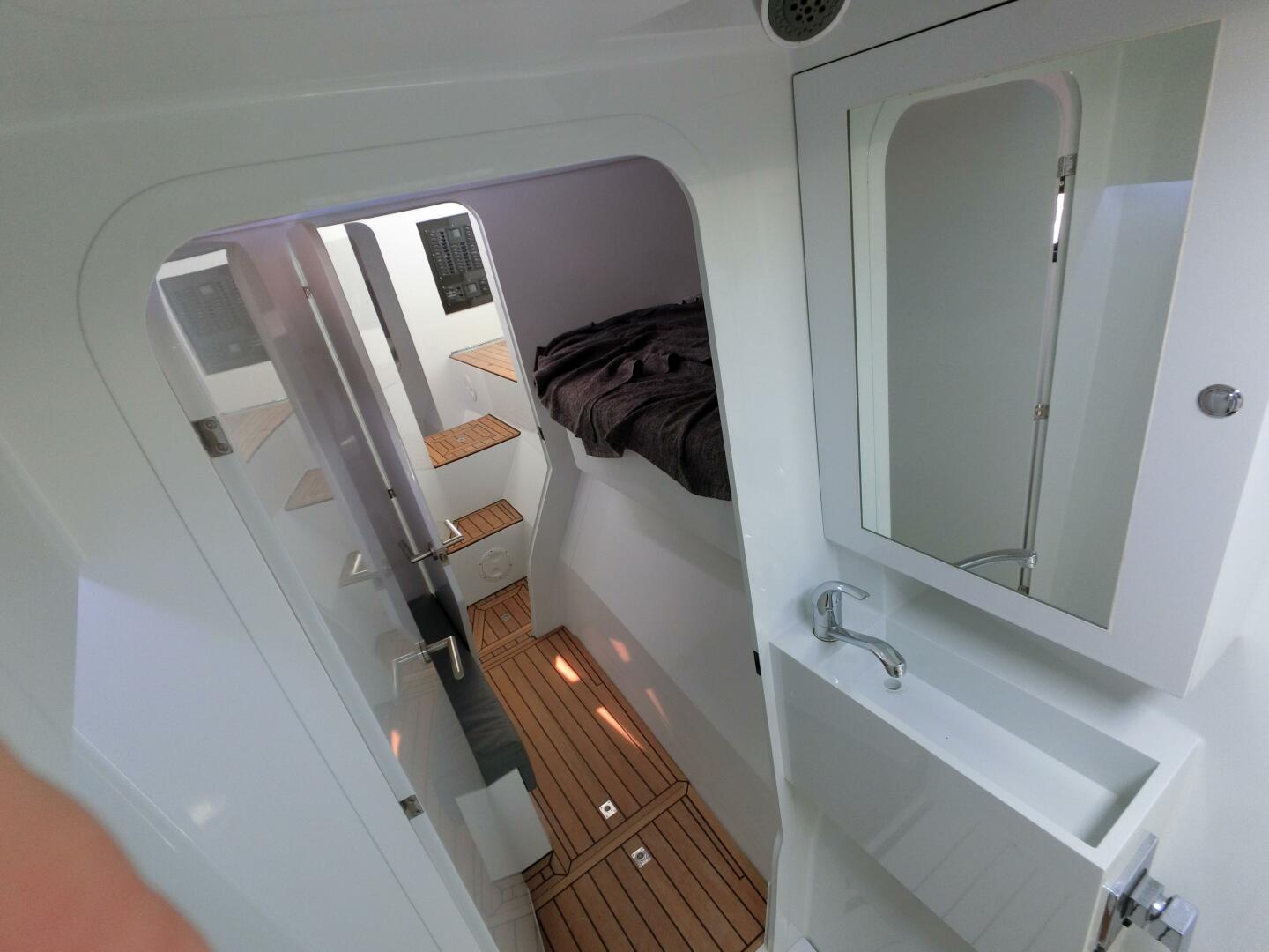 Accommodation includes four queen-sized berths, each with its own ensuite head and shower. The bright 2-pack paint finish throughout the interiors enhances light and makes surfaces easy to clean and maintain.