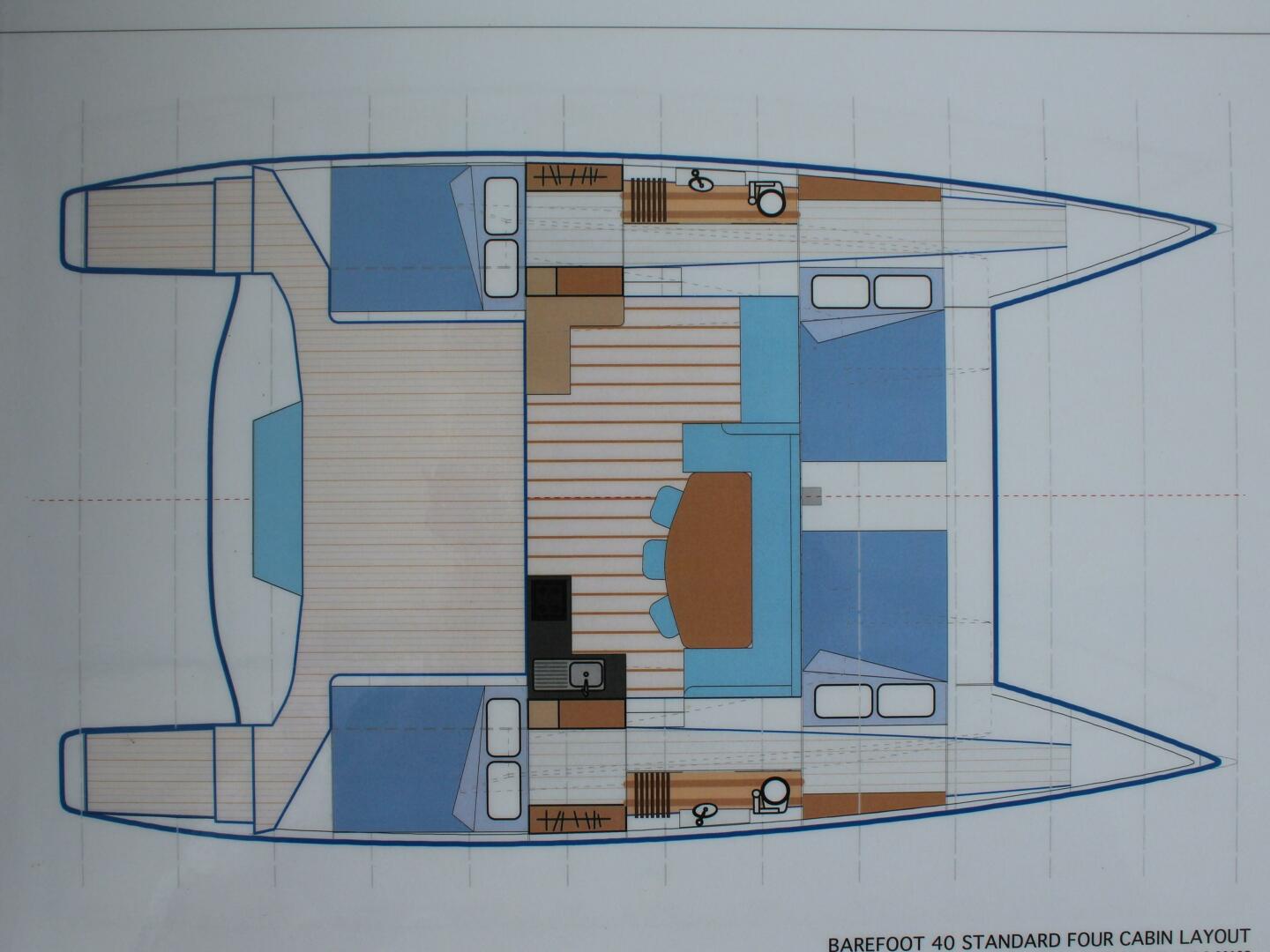 Notes - 2-pack paint finish for easy cleaning, 2 forward cabins with ensuites; 2 aft cabins share midship heads