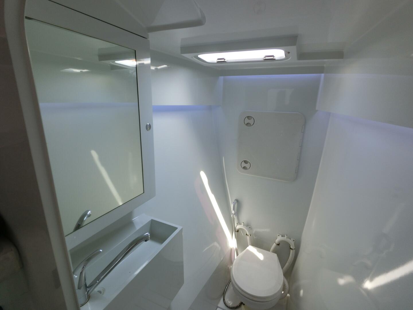 Notes - Clean 2 pack paint finish easily cleaned with teak floor in Saloon. 3 Drop down windows in Saloon ensure great crossflow
