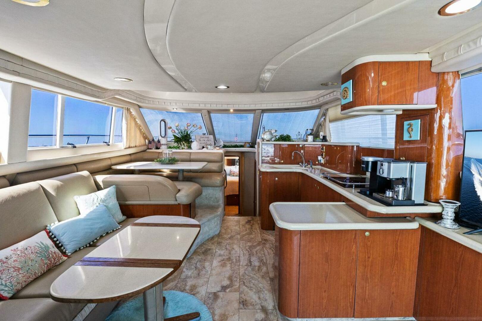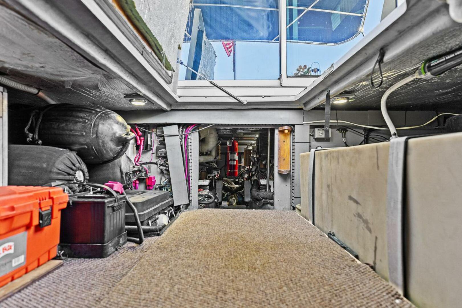 - Spacious flybridge with ample seating for enjoying panoramic views; the bridge vinyl needs to be updated.