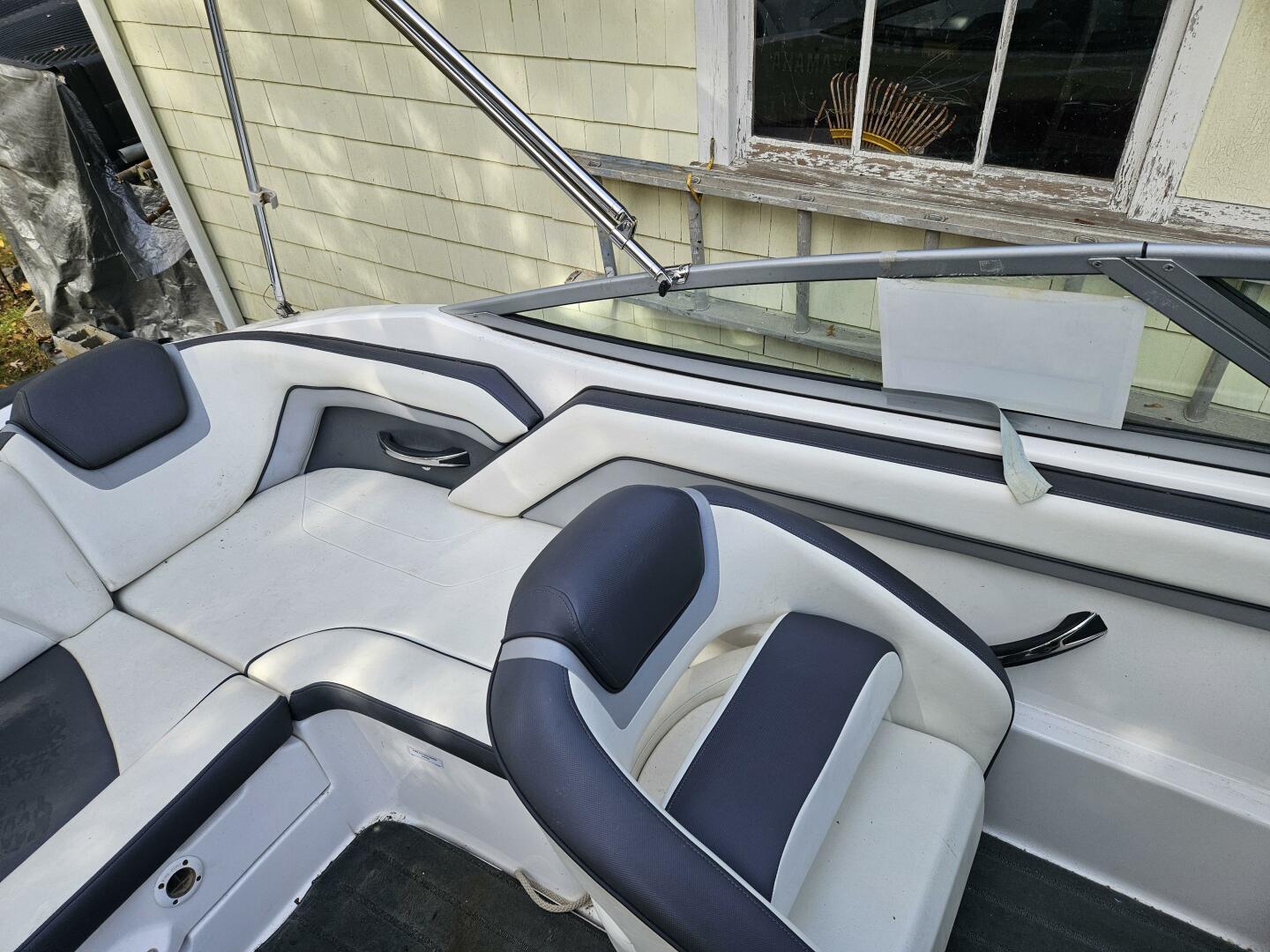 The SX 192 is 19’ 2” long, has a beam of 8’ and has a bridge clearance of 3.4’. The draft is 12.8”. The weight of the boat is 2150 pounds. The fuel capacity is 30 gallons. The boat features a two-tiered swim platform. Options include a Bimini top, a Clarion stereo, Standard Horizon VHF radio, canvas covers for the front seating area as well as for the entire cockpit. Included with the boat is a single axle bunk trailer. The manufacturer recommends no more than eight passengers.
