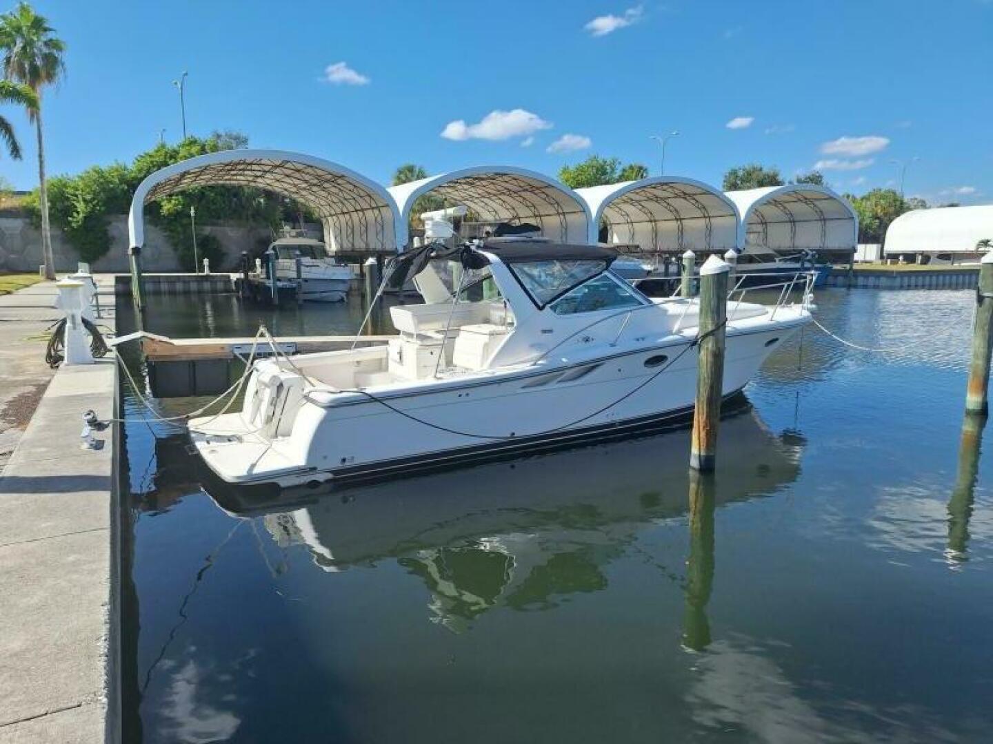 Powered by twin Cummins 6BTA inboard diesel engines, each with 1,220 hours indicated. Westerbeke generator. Loaded. This boat delivers reliable performance and efficiency. The direct drive configuration enhances maneuverability. Equipped with an electric windlass, the Tiara 3500 Open makes anchoring effortless, while the thoughtful design provides ample space for relaxation and enjoyment. Perfect for weekend getaways or extended adventures. This 2002 Tiara Yachts 3500 Open is an express cruiser that combines elegance with performance. With an overall length of 36+ feet, this vessel is designed for both comfort and adventure on the water. The modified Vee hull, crafted from durable fiberglass, ensures a smooth and stable ride, making it perfect for cruising.