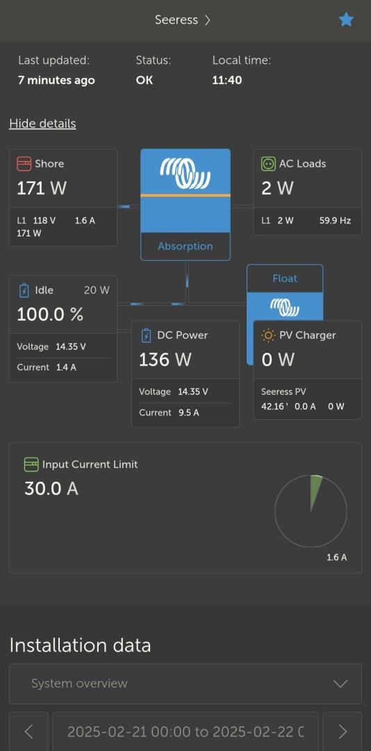 - Victron 50A MPPT Solar controller w/ 350W Renogy flex solar panels