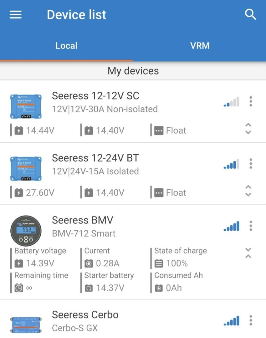 - Victron Cerbo PLC / Cerbo GX touchscreen / BM712 monitor