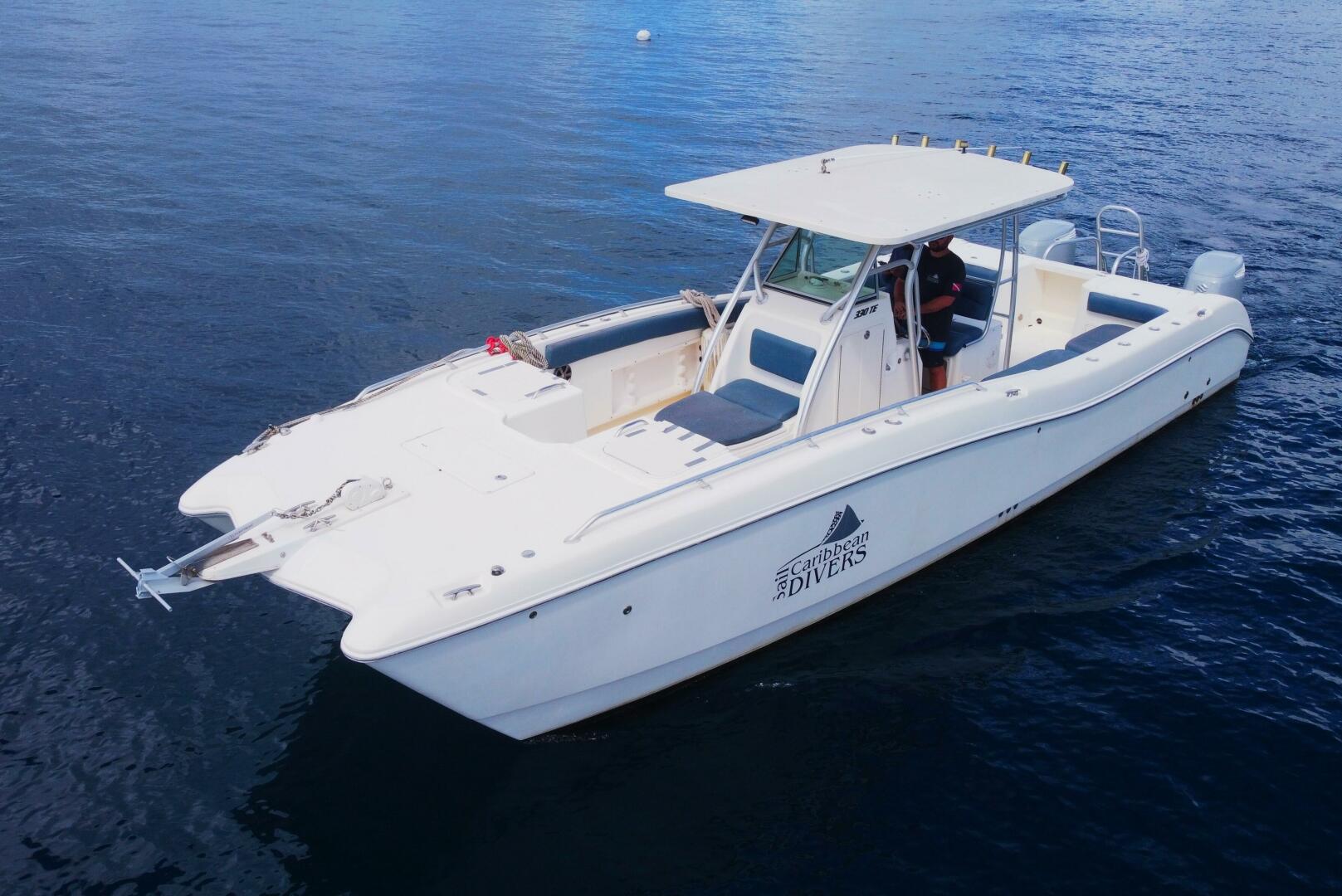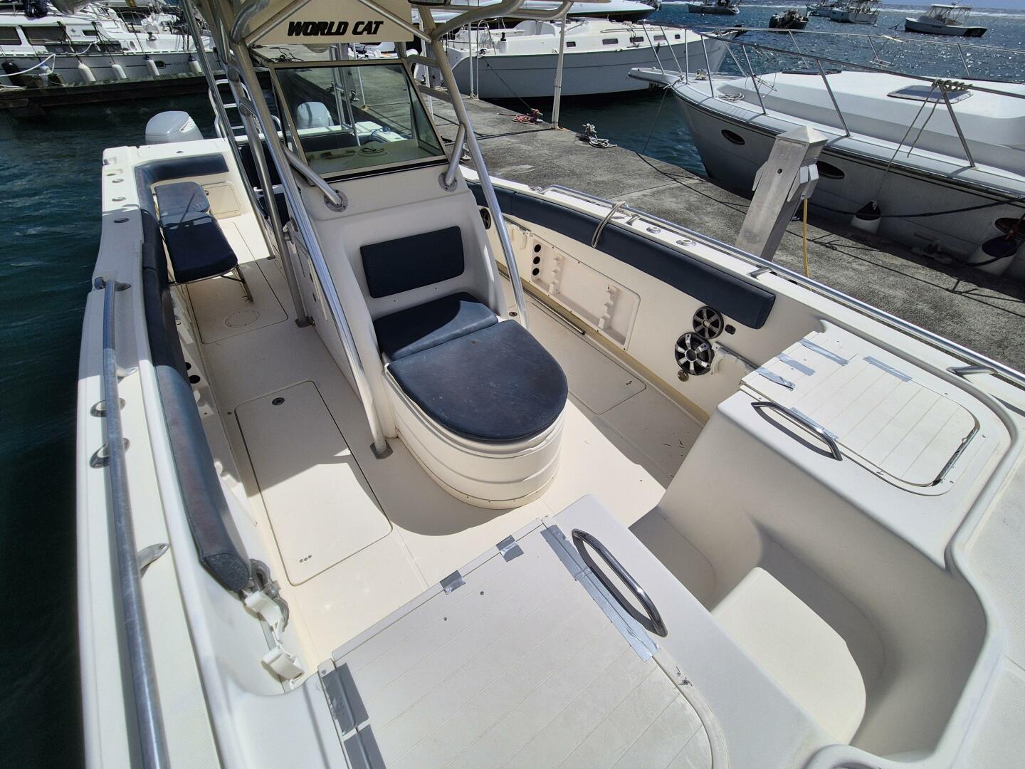 This 2005 World Cat 330TE is fully rated for 14 passengers on BVI charters. It features extra retractable seating and was re-powered in 2013 with twin Suzuki 300HP engines (just over 1,000 hours, freshly serviced, and repainted). Turnkey charter machine—ready to generate revenue!