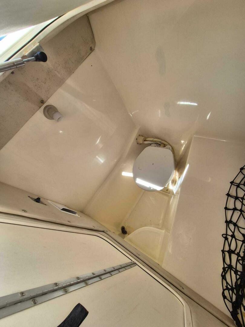 - Steps to foredeck with head to port & large storage compartment to starboard