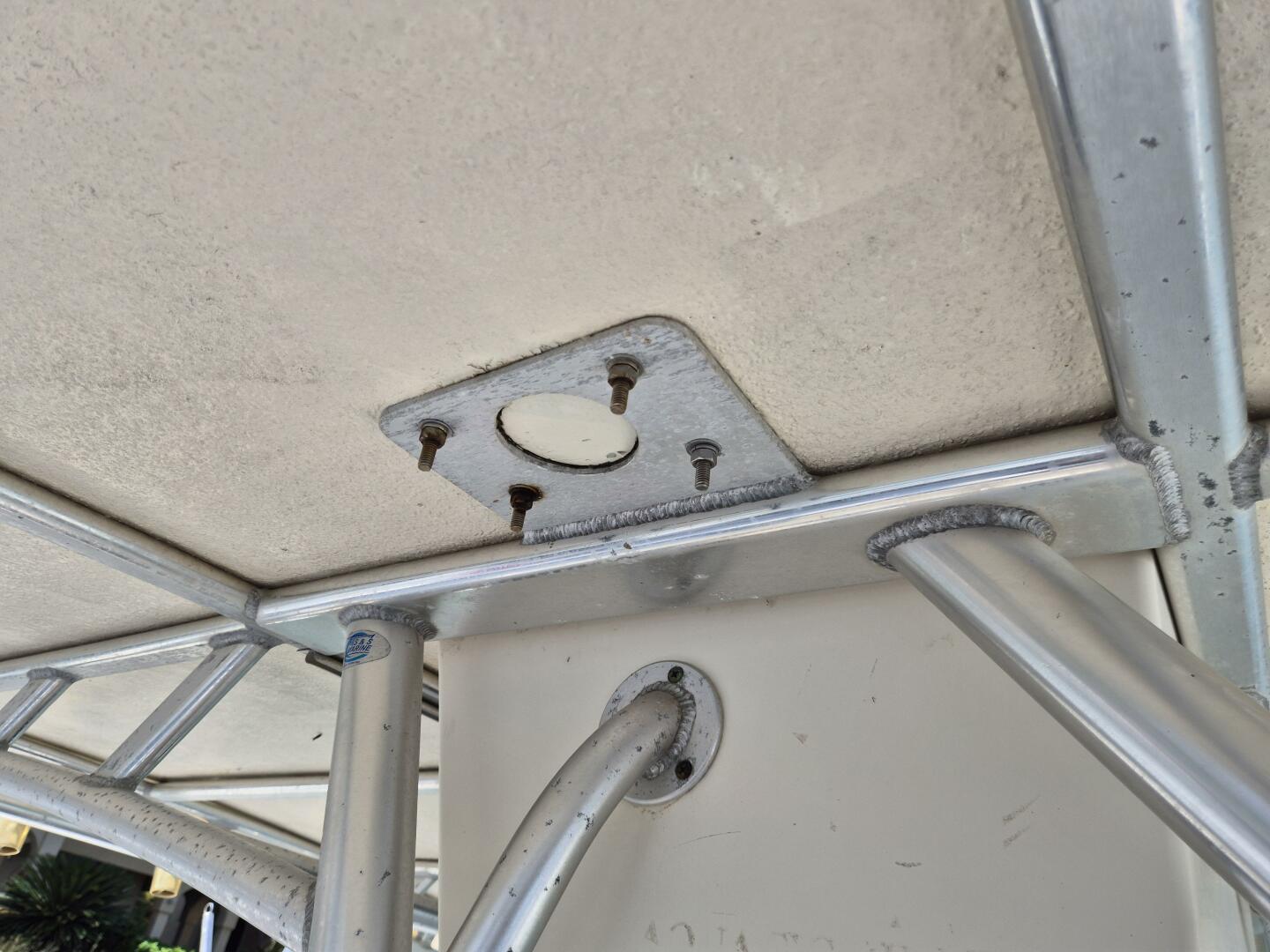 - Rigid hard top on aluminum frame with (6) rod holders & integrated outrigger support mounts