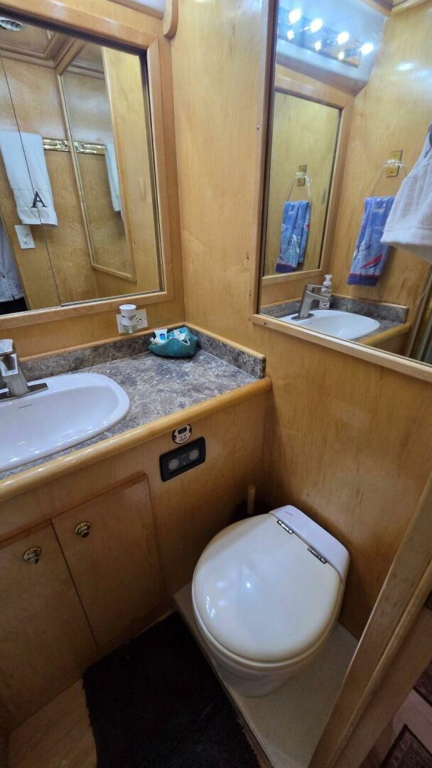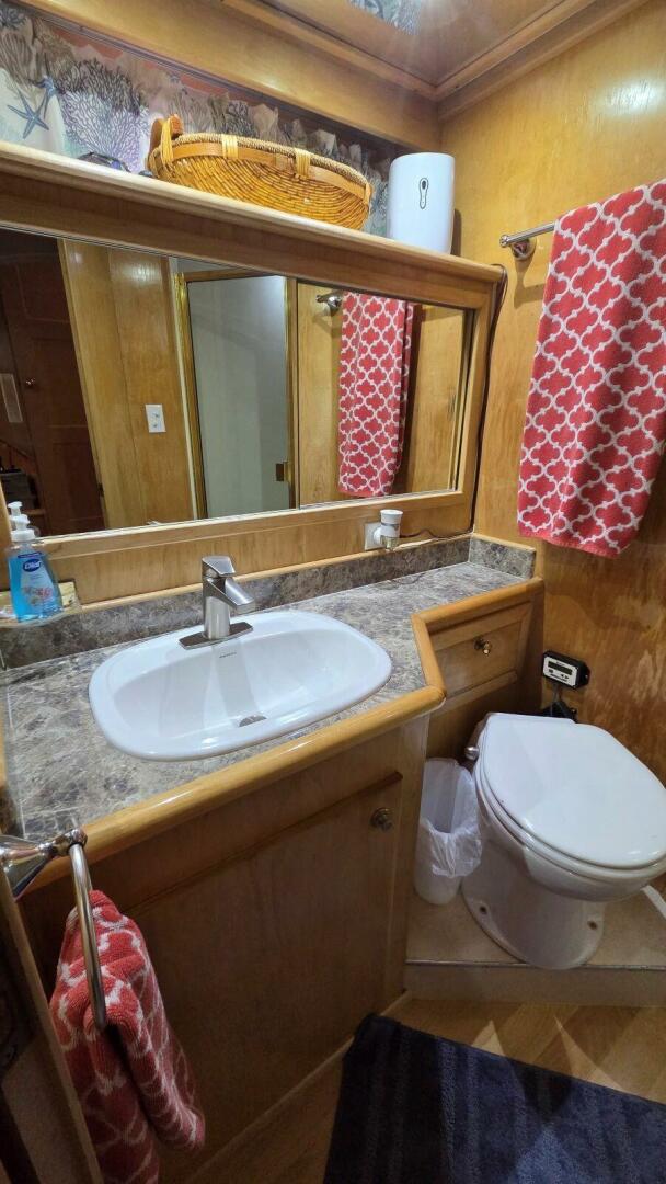 Sanitation aboard Toes in the Water is handled through a modern Electroscan treatment system, which was replaced in 2025. This system treats black water to meet U.S. Coast Guard Type I standards, allowing overboard discharge in many permitted waters while reducing reliance on pump-out facilities — a major advantage for extended cruising and Great Loop–style travel. The system is supported by a properly installed Y-valve added in 2024, offering operational flexibility where regulations require it.