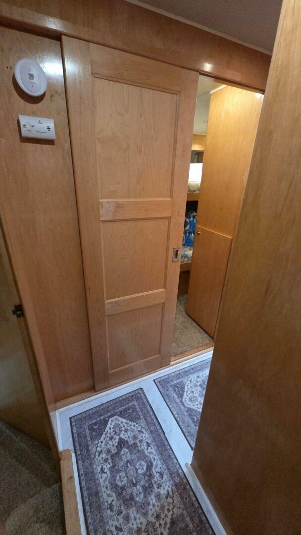 Forward is the VIP stateroom with a queen island berth, excellent storage, hanging lockers, and in-floor access to the bow thruster. A new bow berth air conditioning unit was installed in 2024, ensuring comfort in warmer climates. This stateroom offers true guest privacy and comfort rarely found in this size range.