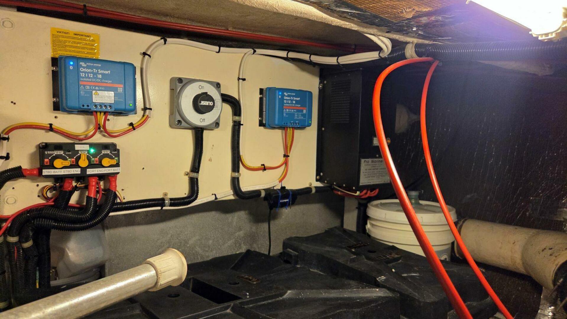 Toes in the Water features a 50-amp shore power system and has benefited from major electrical upgrades in recent years. In 2025, the house system was upgraded with four Victron lithium batteries, a Victron 3000-watt inverter, Victron BMS, and 600 watts of solar, dramatically improving off-grid capability.
