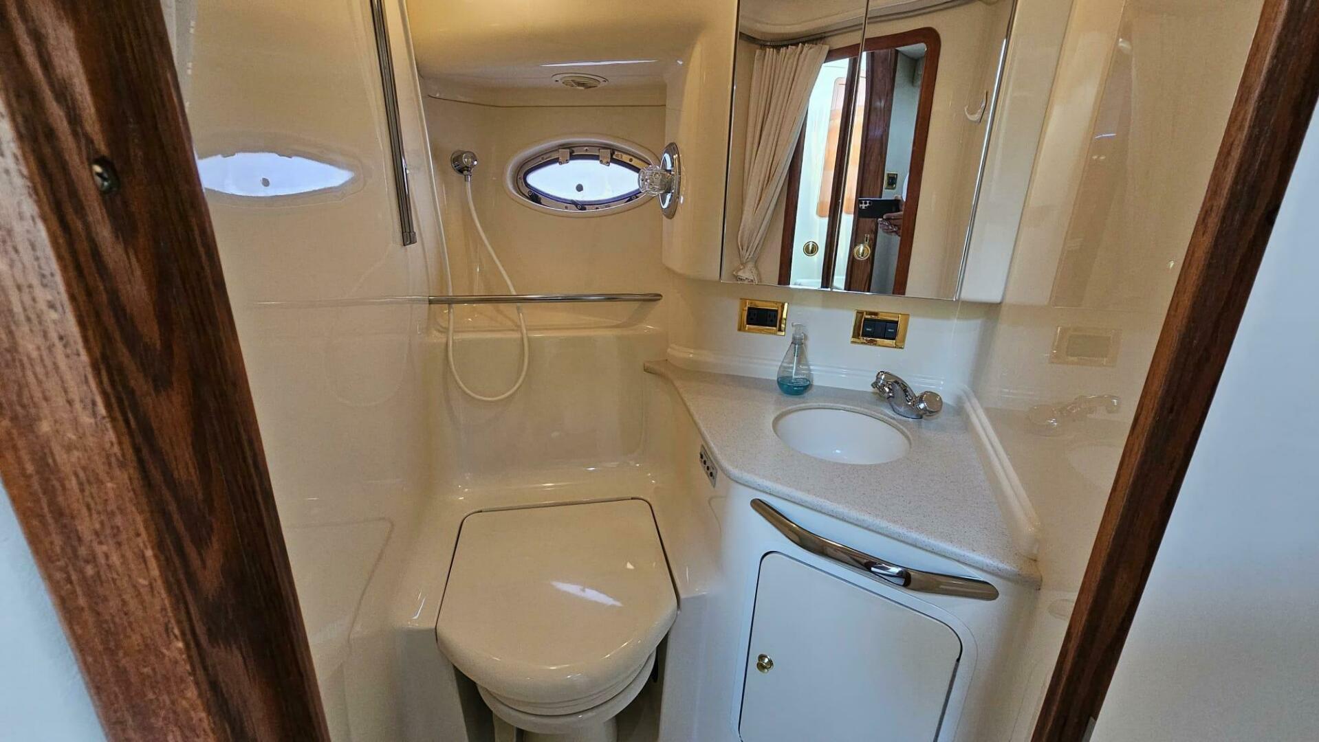 - Two Ensuite Heads: Each stateroom has access to a private head with a VacuFlush toilet and enclosed shower.