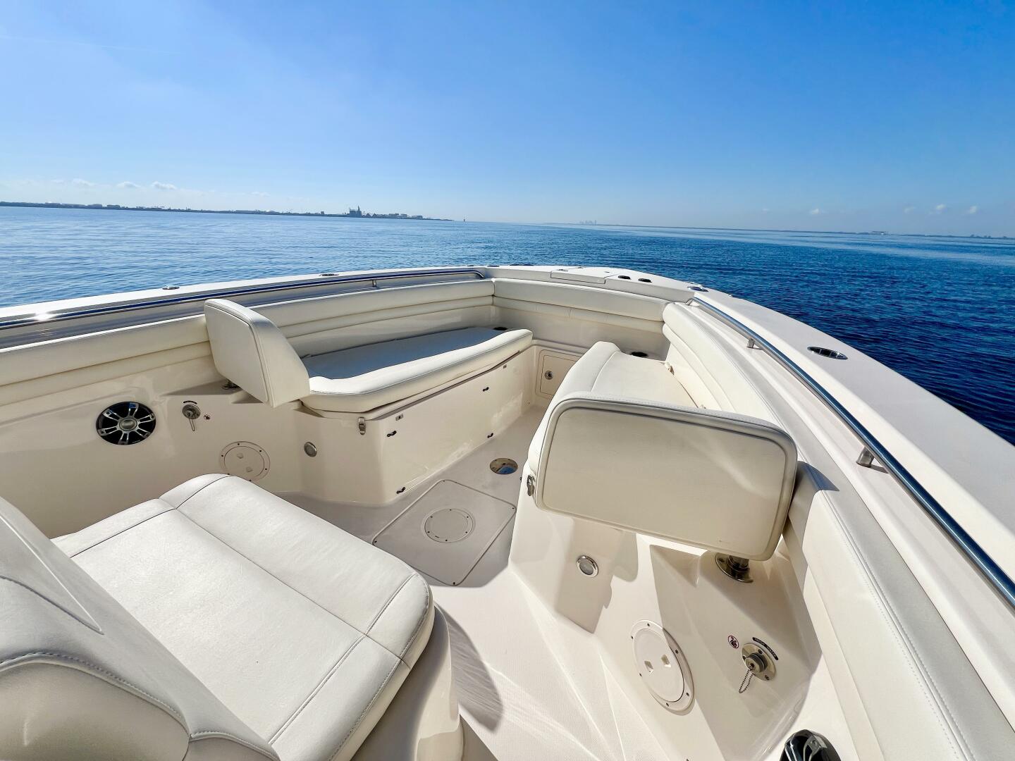 Low hours, indoor stored, exceptional condition. Powered by Yamaha F300s, Raymarine Electronics, Bow Thruster!