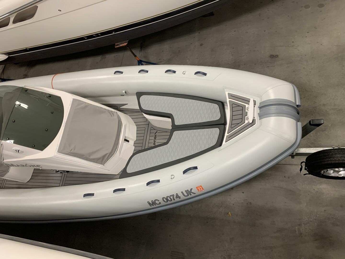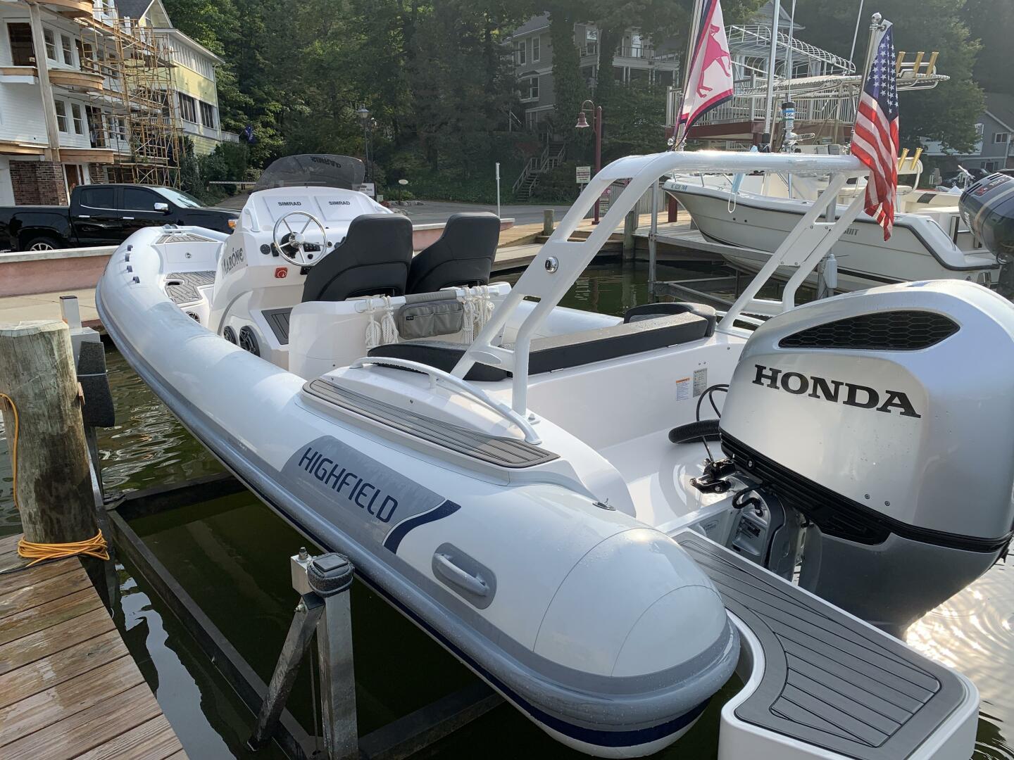 2019 Highfield 760 Sport rigid bottom inflatable! Only one is the USA with the Honda “Fly-by-Wire” shifting system! You’ve never driven an inflatable with such ease and joy. 250HP Honda is whisper quiet but roars to life and puts the 25-foot boat on plain in seconds.