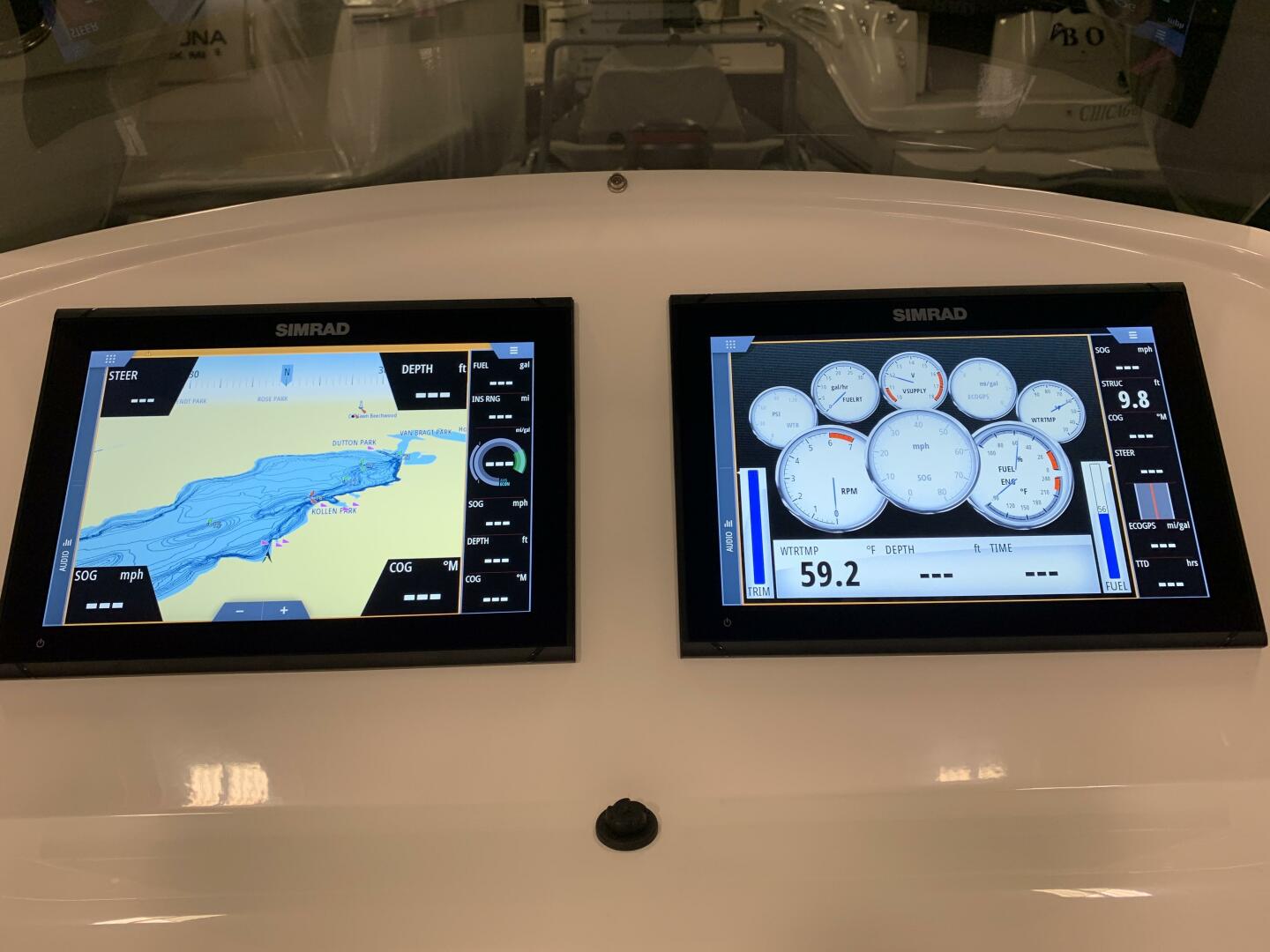 -Dual 12" Simrad Chart Plotters w/ Transducer - Connected to Honda Outboard