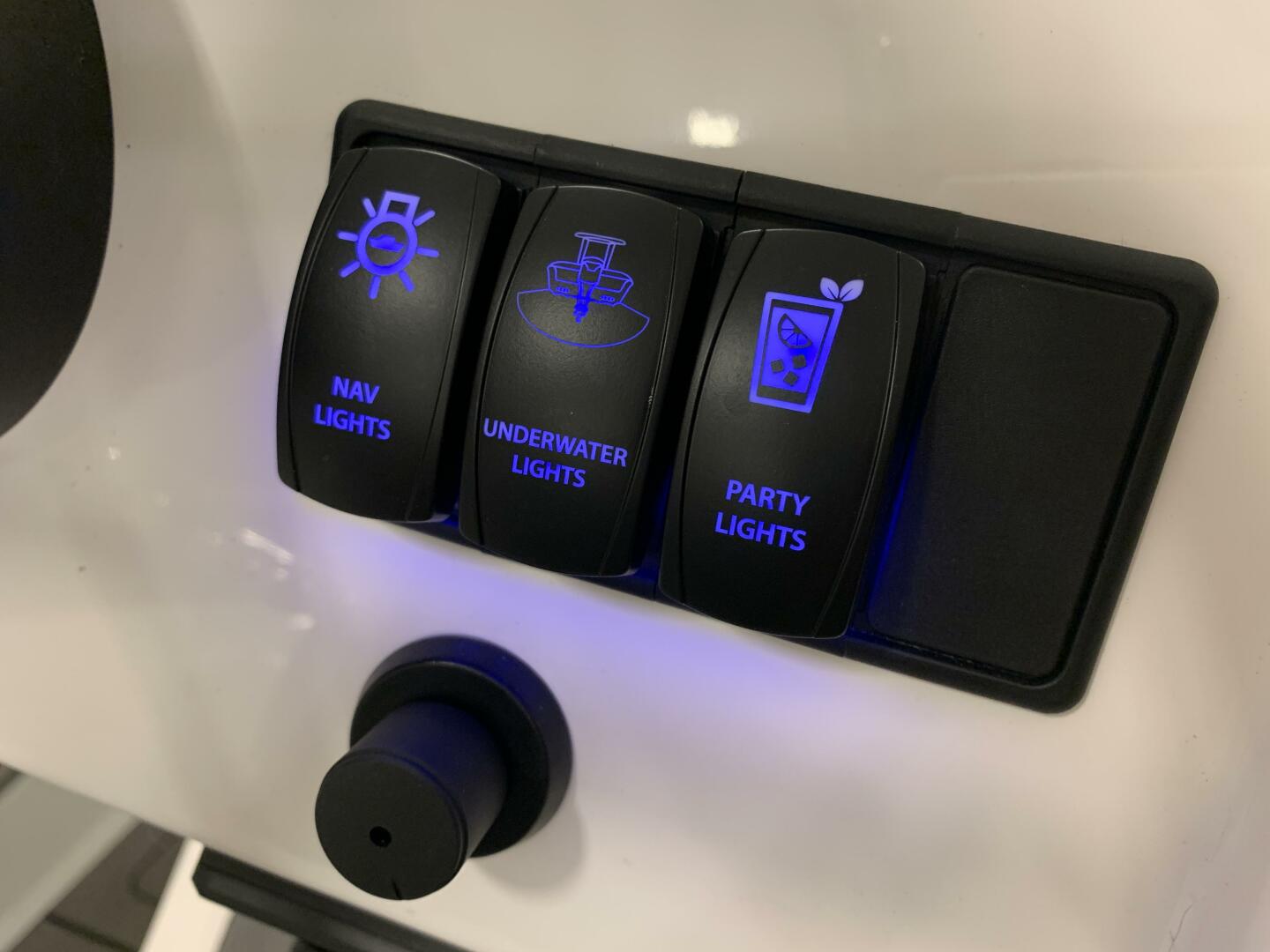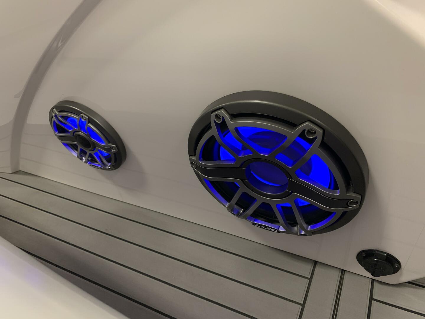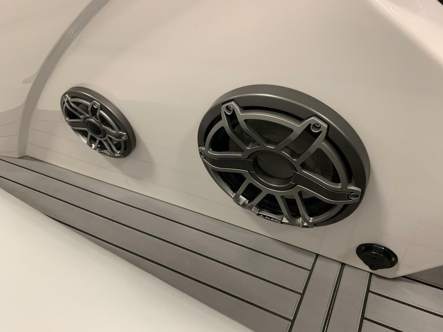 With comfortable seating for 10+ and rated for up to 16 passengers this boat is an entertainer’s dream! And speaking of entertainment, turn up the tunes and enjoy concert sound with JL Audio speakers throughout including two massive subwoofers powered by two amplifiers and 3 batteries! Flip on the party lights and blue underwater lights and enjoy the night life in style. Two large SIMRAD touch screens help control all of the boats many features and a built-in wash down pump will help you quickly clean up after a day on the lake. Pull this boat out of the water and down the road confidently with the included tri-axel trailer. Truly and exceptional one-of-a-kind boat with too many features too list at an amazing price! Call for your VIP tour today!