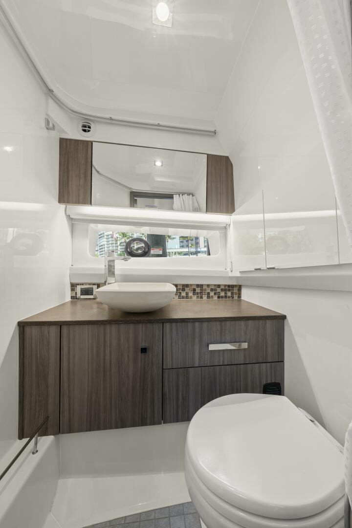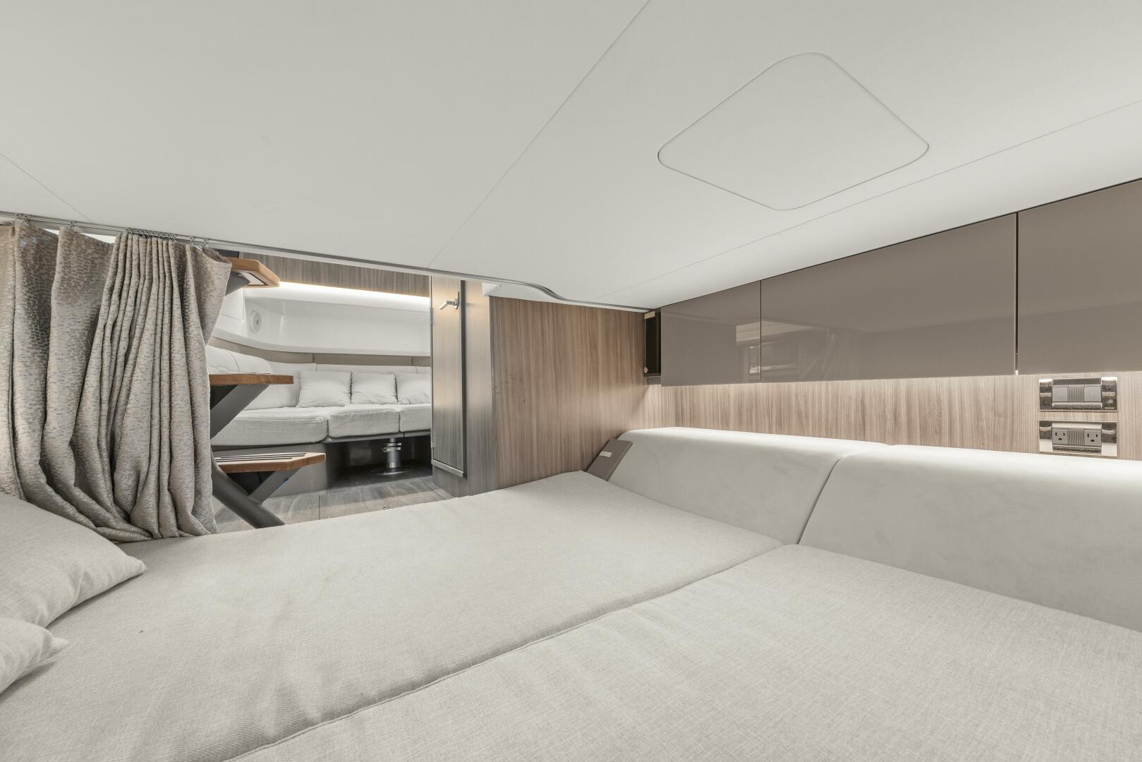 Excellence. An expansive cockpit social zone has a well-appointed wet bar with refrigerator, sink and available dual grills while the innovative fold-down swim terrace opens to extend the cockpit all the way to the water. Innovations, found throughout, include Joystick Piloting and Dual Digital Dash with standard 16” Simrad Touchscreen displays. Bring your friends... all of them. The SLX 400 Outboard has a generous cabin and expansive bow and cockpit seating. All of this and amenities for entertainment means hours and days of fun aboard this award-winning boat.