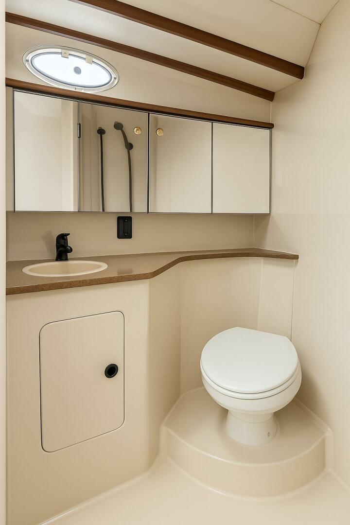 - Aft head refresh: Corian countertop, faucet, stainless sink