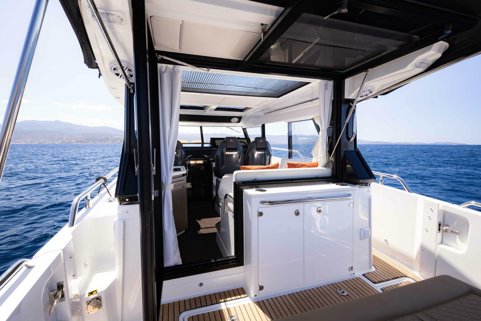 - Foldable Aft Cockpit Wood Table (Not Compatible with Infinity Seagrass in Cockpit)