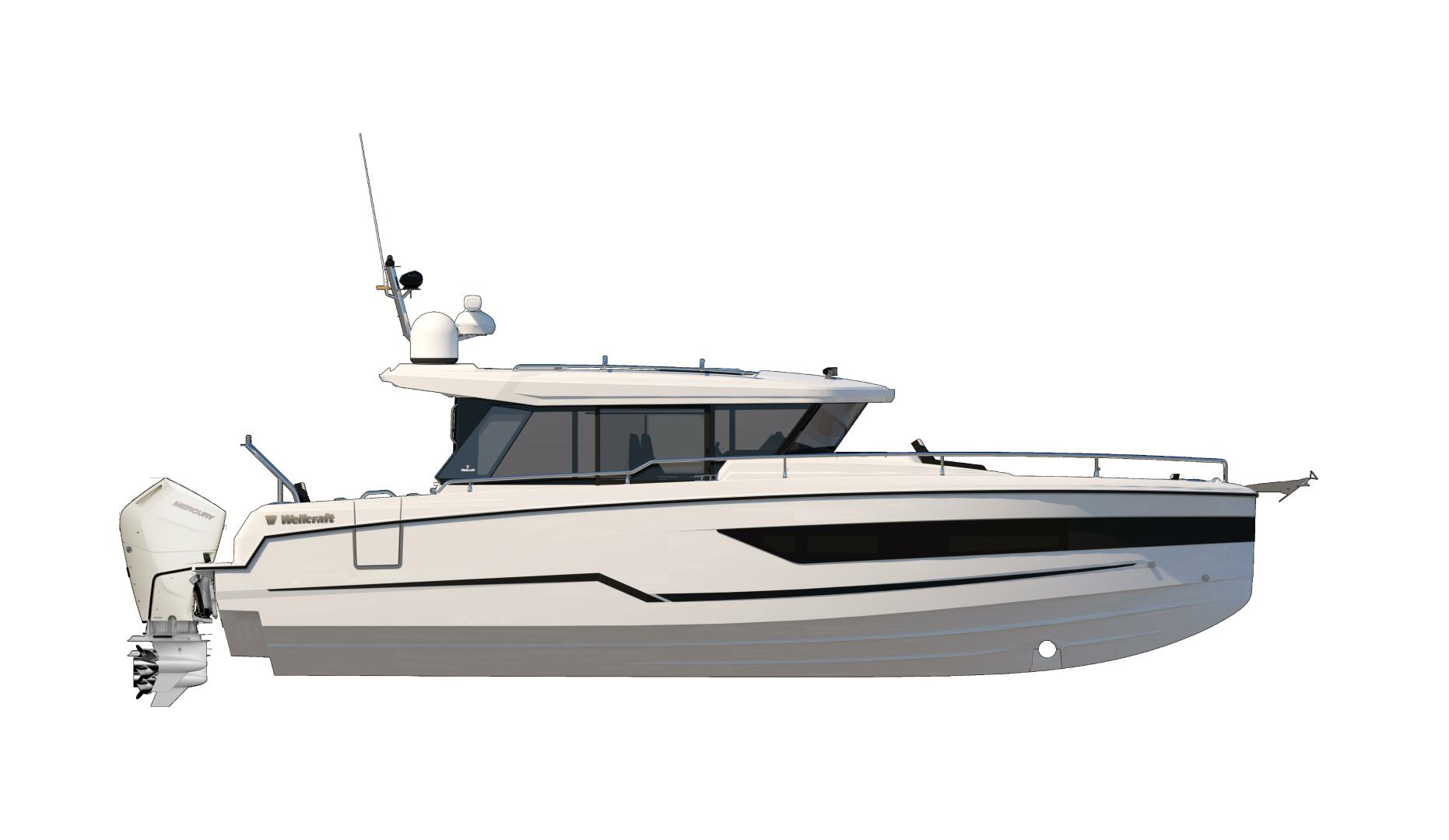 For over six decades, Wellcraft remains the vanguard of offshore boating with a strong history of power and performance. Today, Wellcraft is widening its offer with a new, versatile generation built for all adventures, in all types of weather, providing a new perspective and enthusiasm for boaters worldwide. Outlasting trends, Wellcraft will enable them to conquer new territories, pushing the limits further than ever before. This new generation of performance cruiser will provide a wide range of capabilities and purposeful functions, responding to the toughest demands and meeting every challenge!