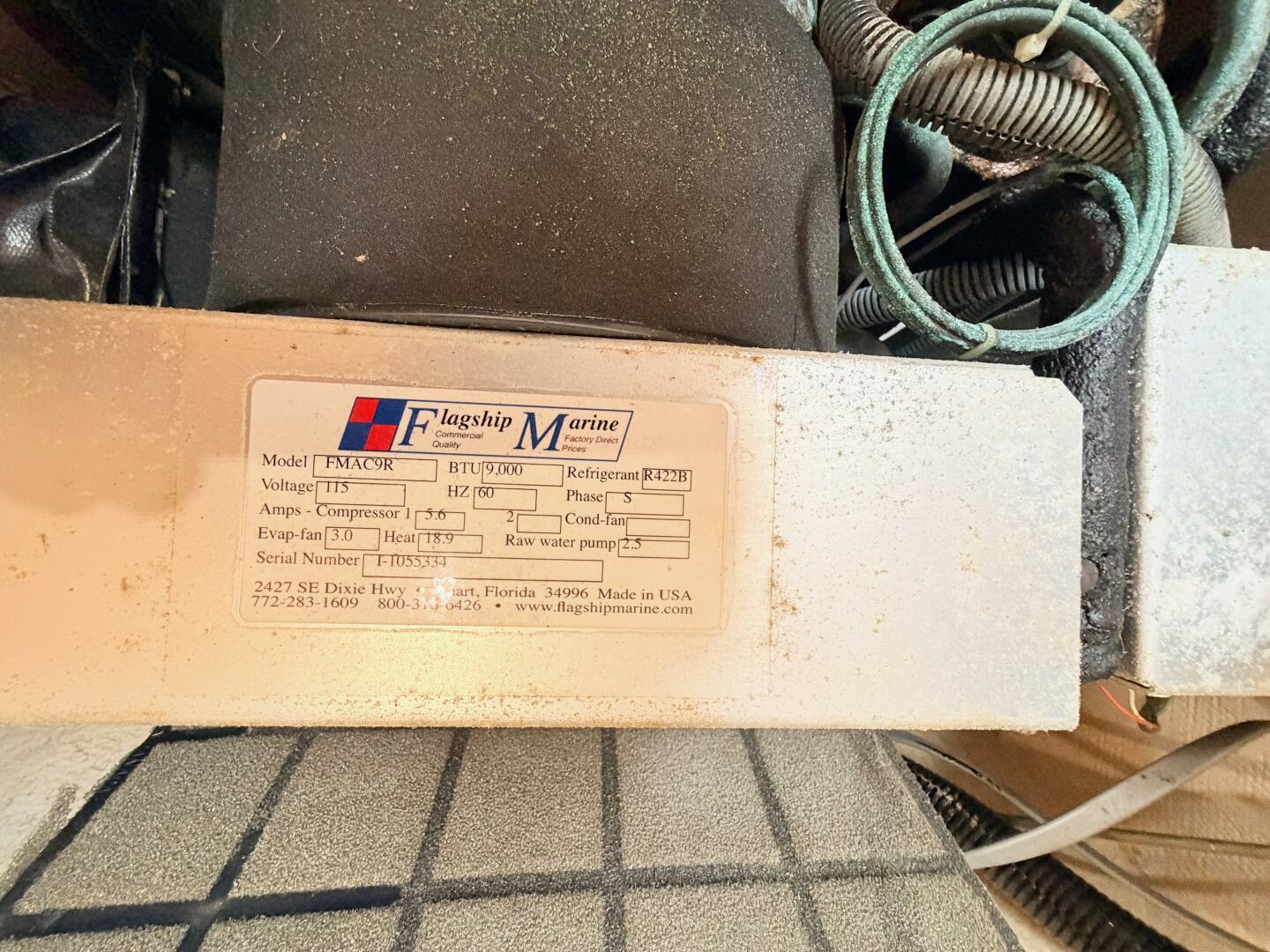 - Forward cabin A/C: Flagship Marine — Model FMAC9R — 9,000 BTU