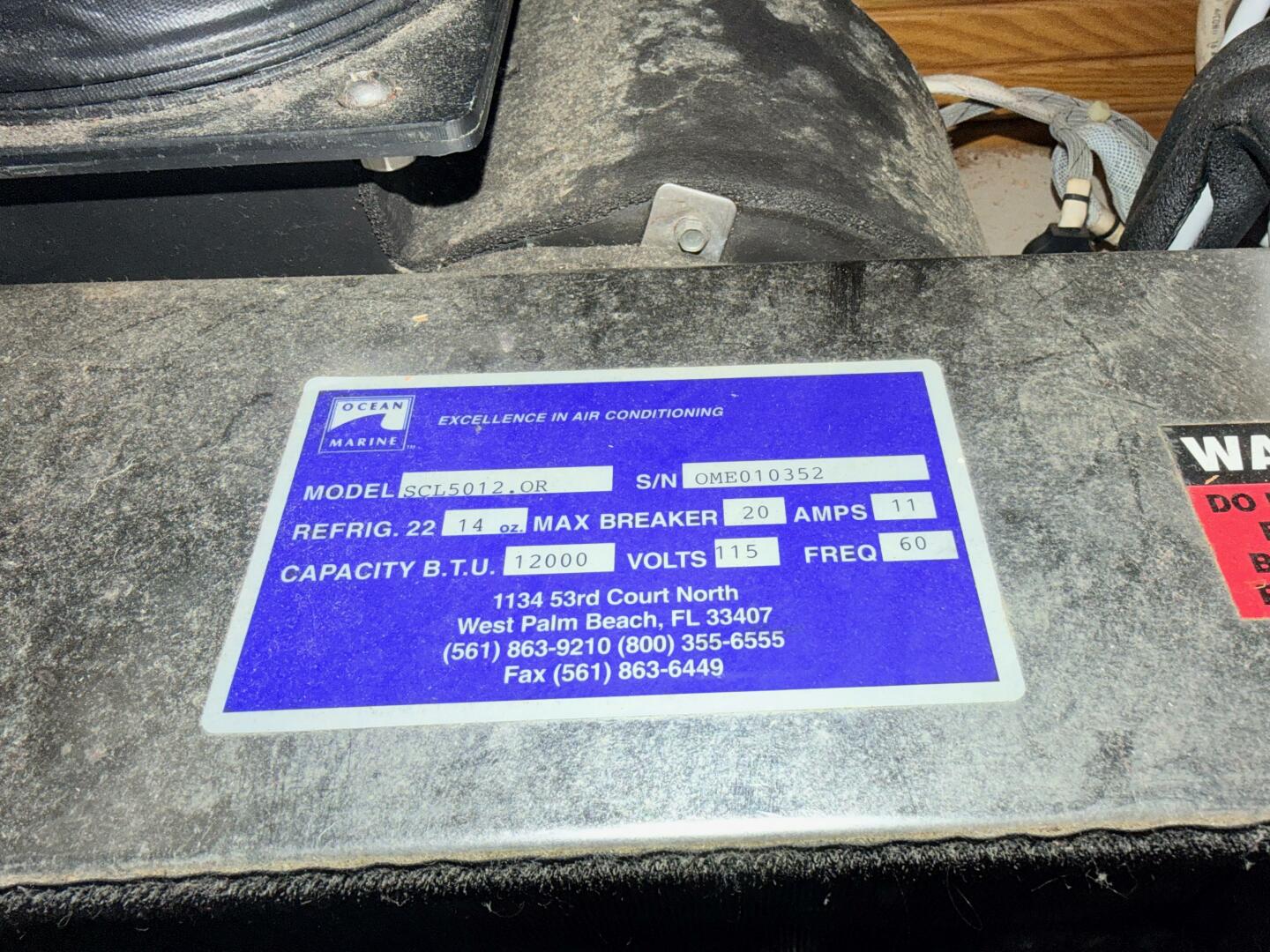 - Aft / rear A/C: Ocean Marine — Model SCL5012 — 12,000 BTU