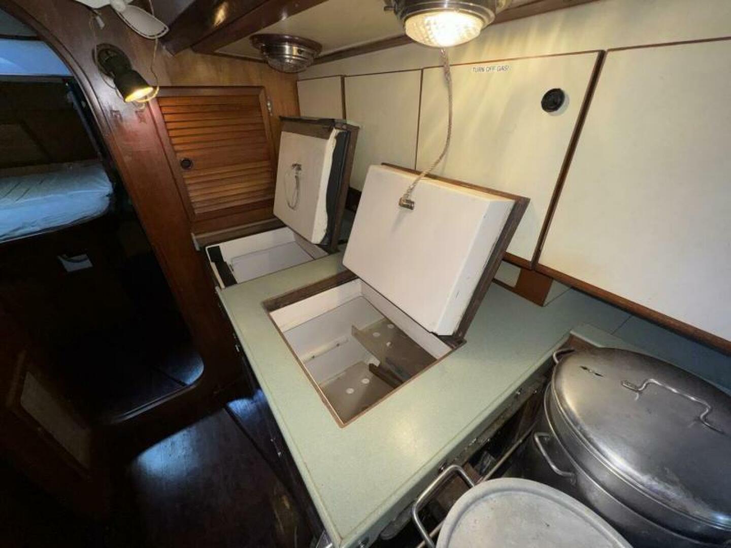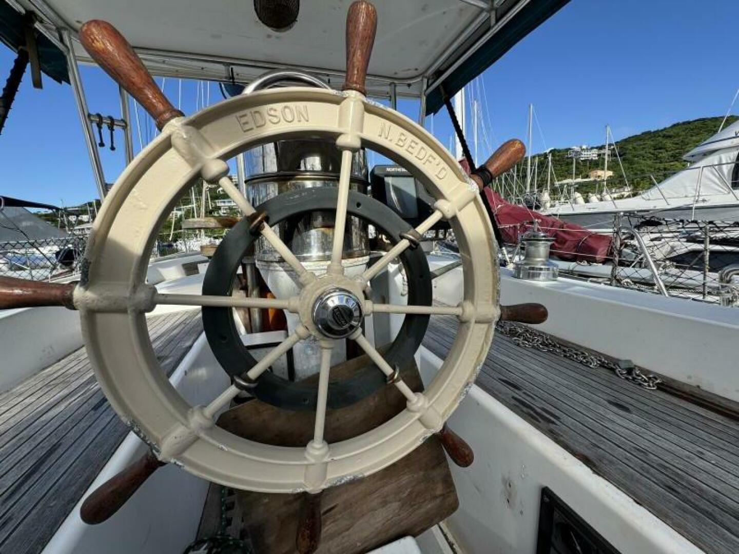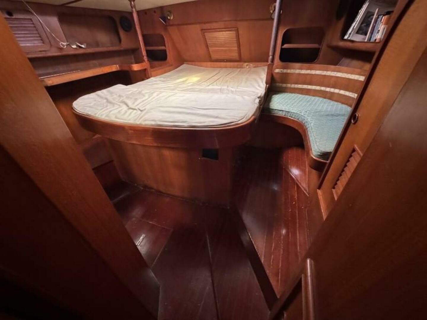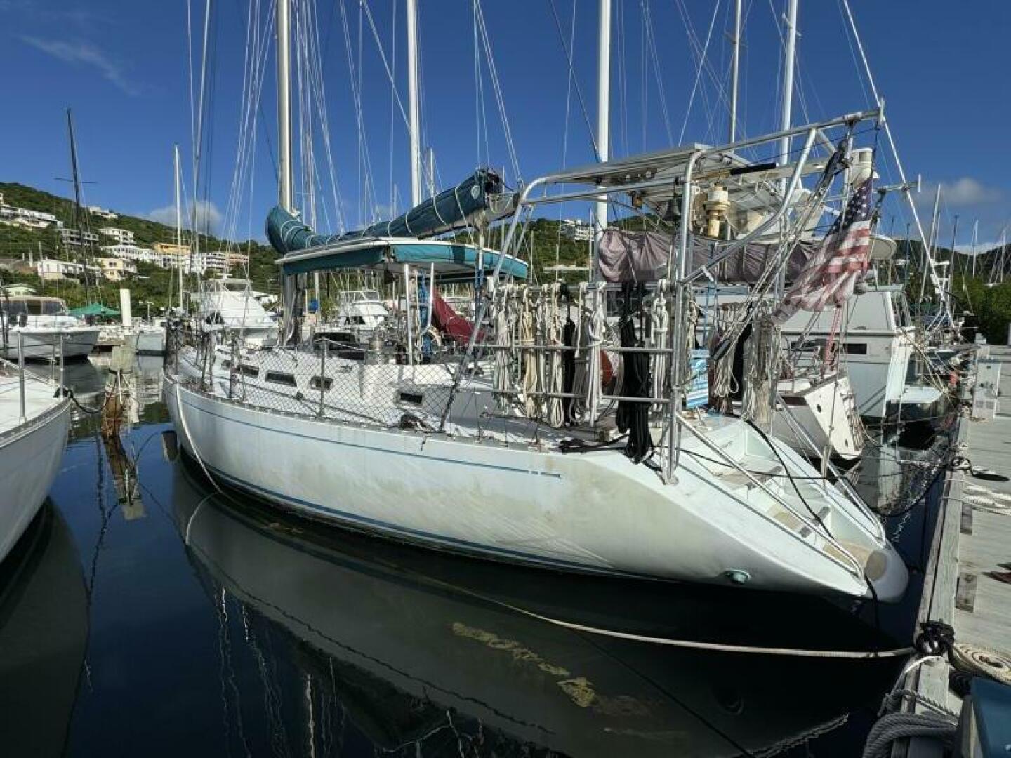 The solid fiberglass hull, reinforced internal structure, and deep lead ballast deliver exceptional durability and a stable, sea-kindly motion. A cutter rig provides versatile sail-handling across varied conditions, complemented by through-bolted deck hardware and a well-engineered deck layout for reliable offshore performance.