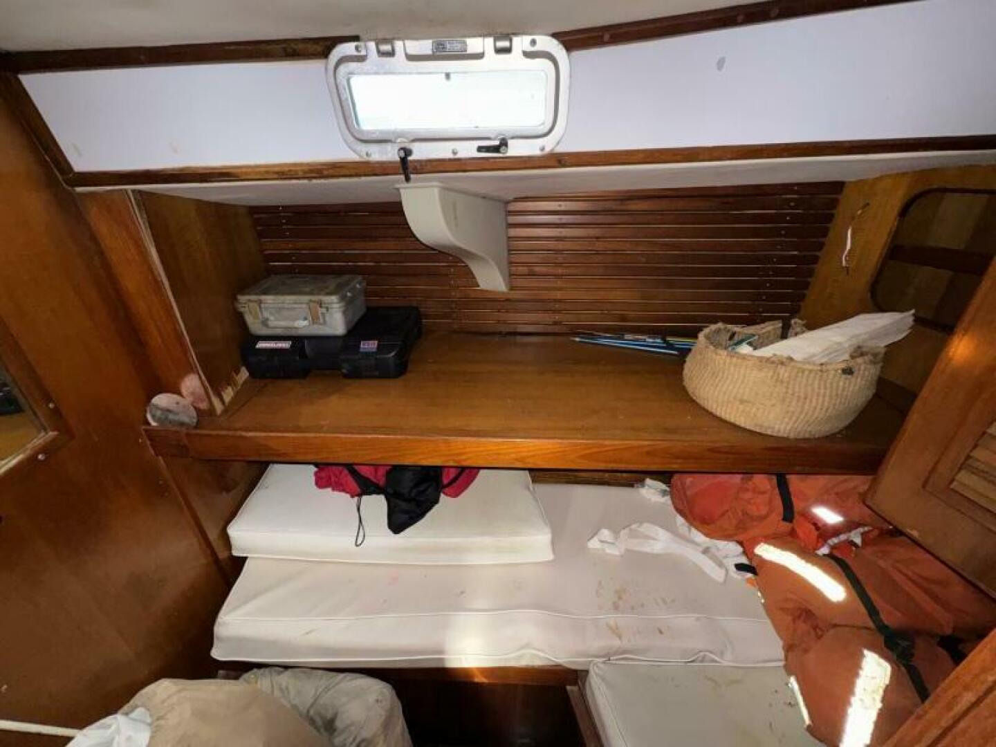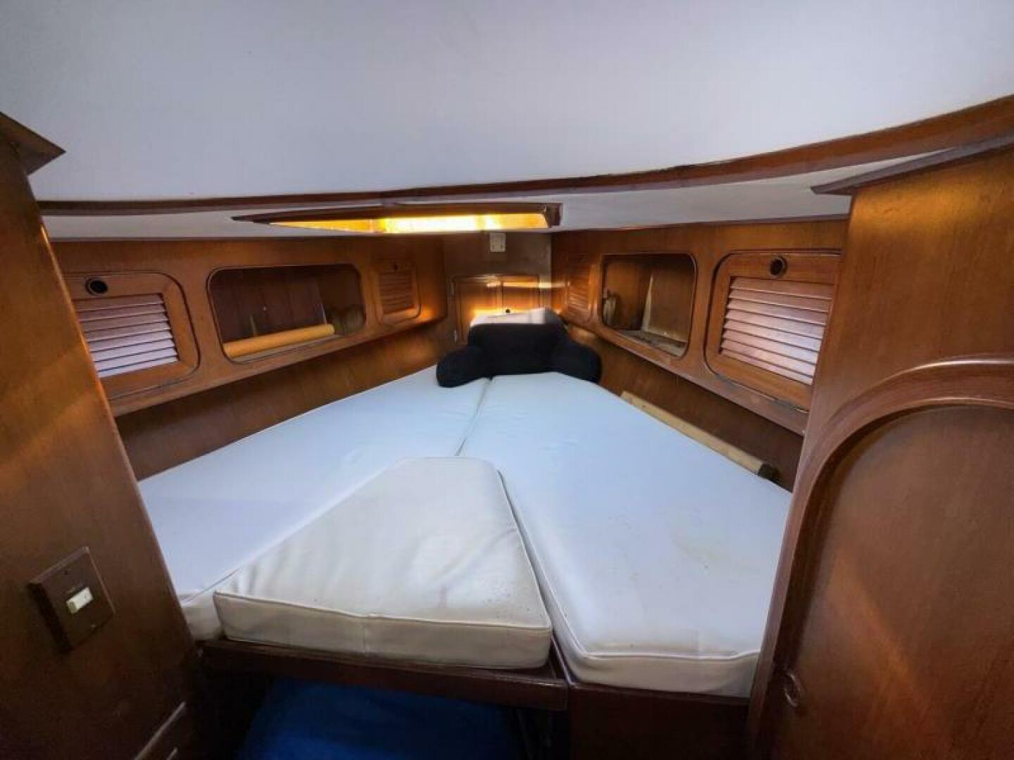 • Forward V-berth has large sleeping area that can accommodate 2, with large hanging locker to starboard