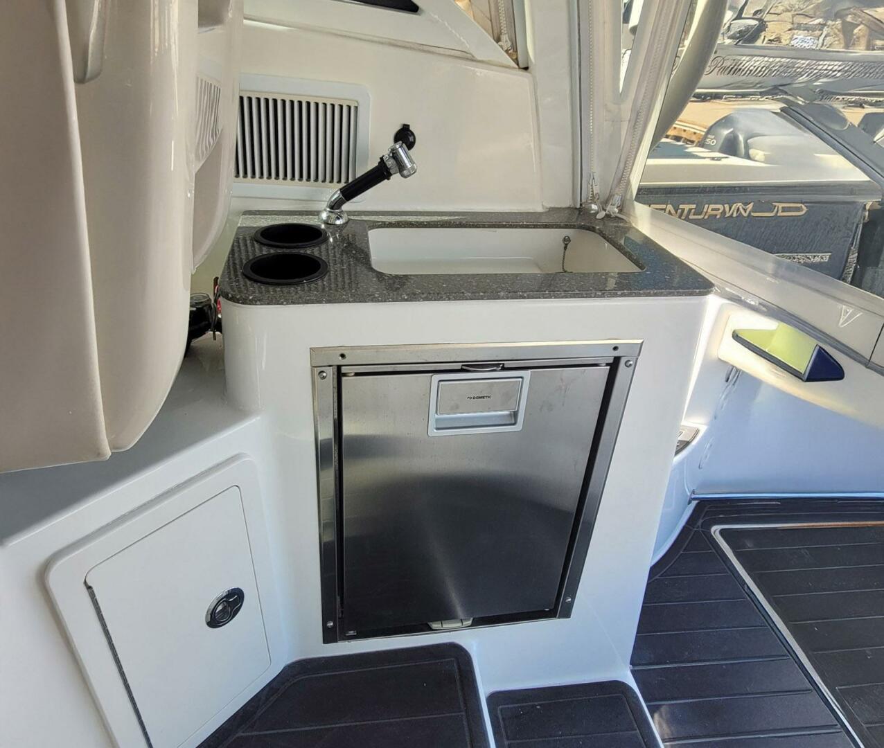 Complete navigation and fish-finding electronics as well as a satellite Fusion stereo system with marine deck speakers.