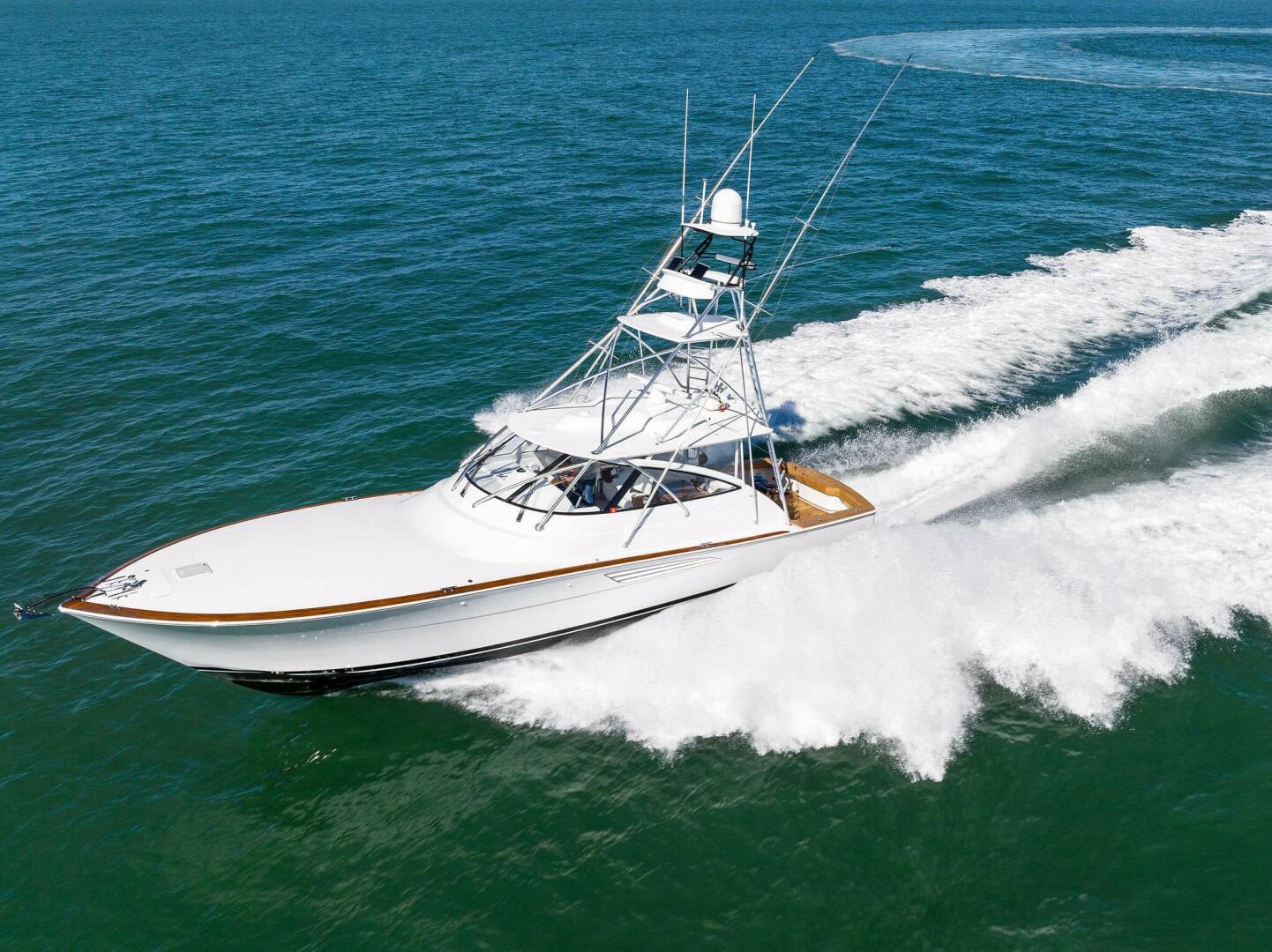 With its aggressive entry, raked stem, one-piece wraparound windshield and Palm Beach Towers (PBT) hardtop and tuna tower, the 54 O presents a striking profile while excelling as a stylish fish-and-cruise Viking thoroughbred. The 54 ST features a three-sided fiberglass deckhouse (with an optional solid aft bulkhead) and a PBT tuna tower. This version is also available sans tower in our sophisticated SC rendition. Similarly, the 54 O can be delivered without a tuna tower as a sleek express yacht. All three models run on the same advanced hull form of the 54 C, which has exceeded all performance expectations.