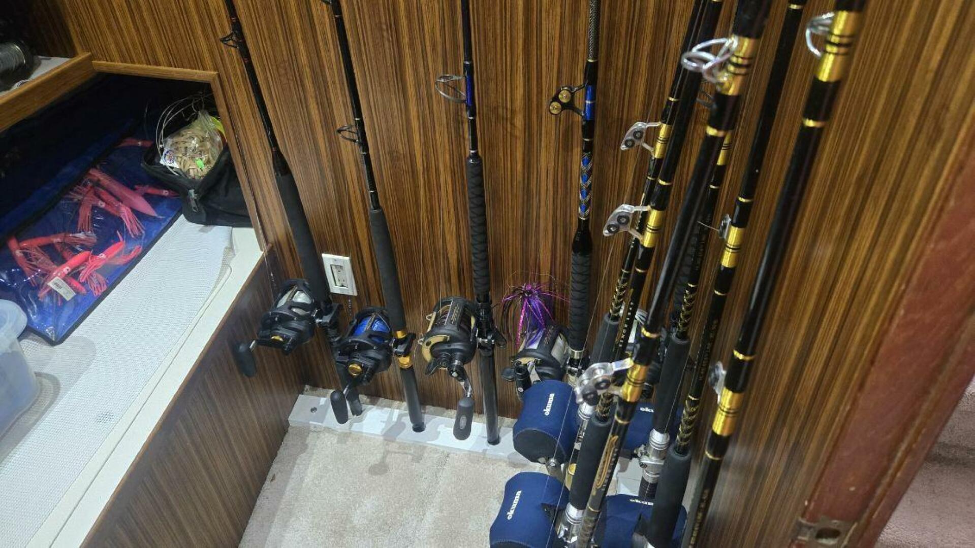 Two stateroom, 2 head layout. 3rd stateroom converted into tackle room. Roomy Salon with Step down galley with extensive storage underneath.