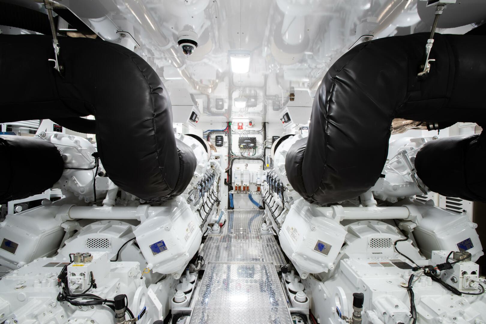 Drive : Polished Cypriot nickel bronze exhaust piping Polished chrome MTU/DDC Rocker covers