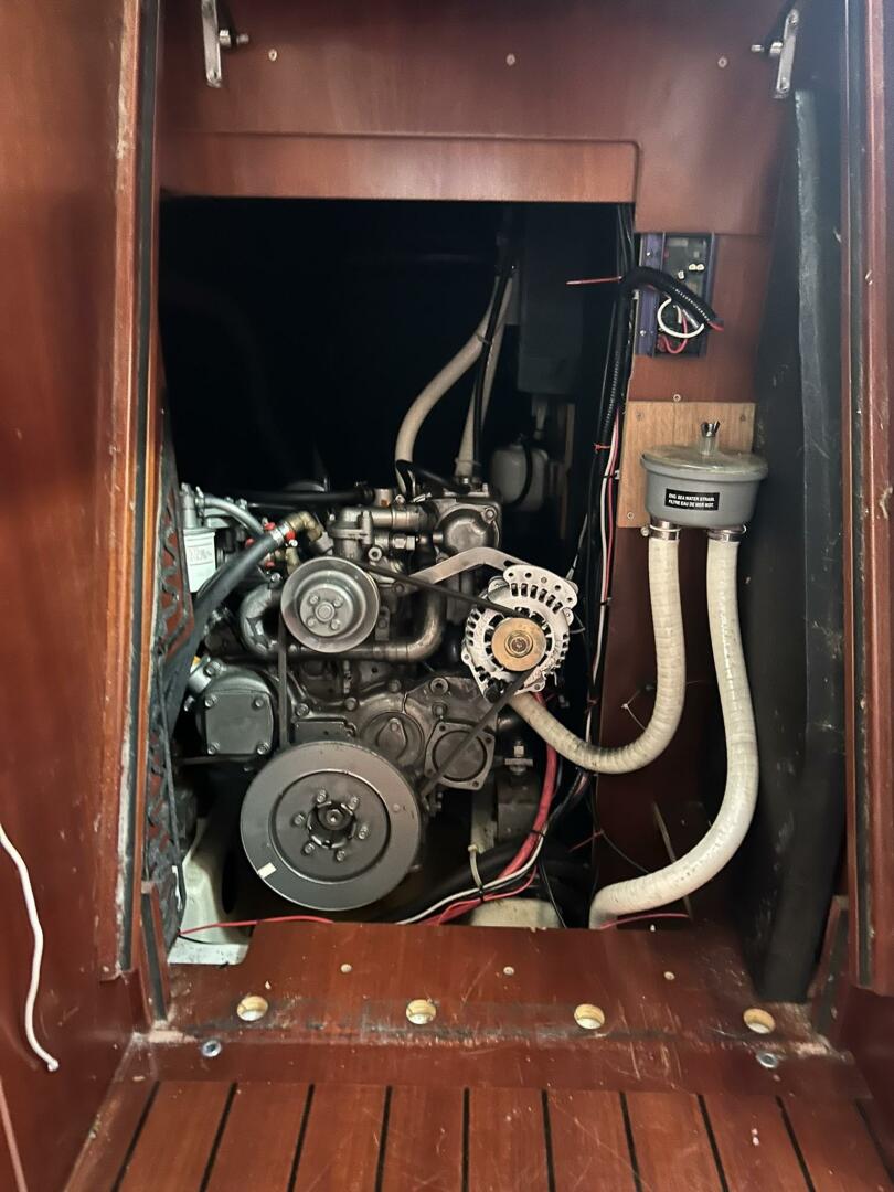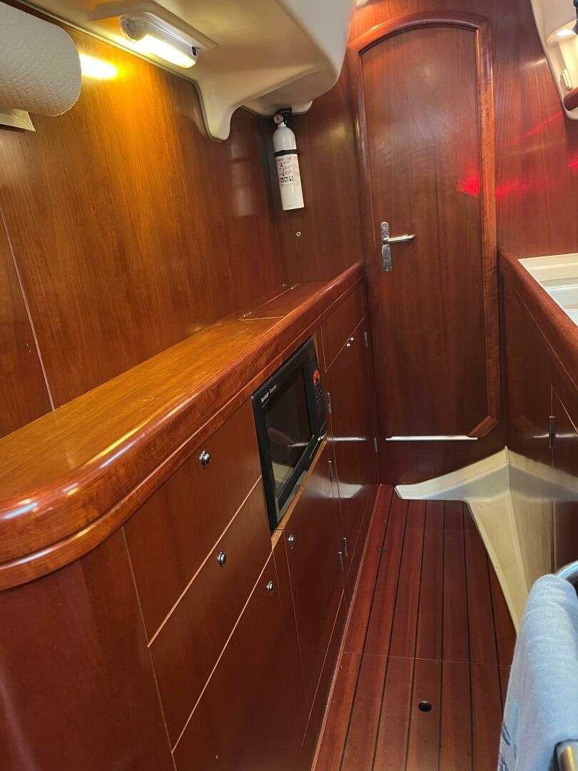 Working your way down the companionway into the interior, the first thing you’ll notice is how well the layout is designed; open, bright and comfort come to mind. The salon is welcoming with generous natural light and a settee that invites relaxed evenings after a day on the water. The galley is thoughtfully positioned and equipped for both meal preparation underway and entertaining at anchor. Forward, the V-berth cabin offers a comfortable private retreat, and aft there’s a second cabin with a center-line island berth, ideal for owners. Two heads (both ensuite) further enhance live-aboard convenience. With easy access to engine and technical areas, maintenance aboard Sea No Evil has been simplified without compromising space or functionality.