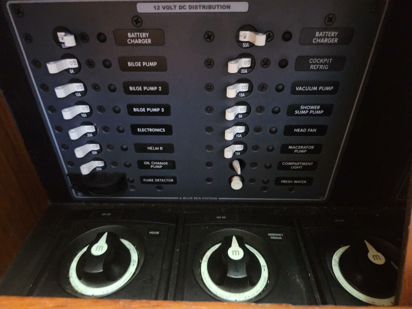 - Battery Switch - (3) Located at companionway cabin. Has Parallel w. helm controlled solenoid.