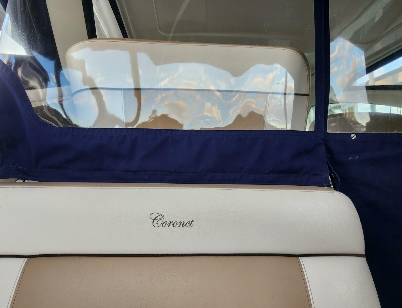 Twin Crusader 6.0L gas engines are controlled with Tiara signature gold accent levers. The captain's chair is comfortable and wide with adjustability fore and aft with a molded nonslip foot panel.